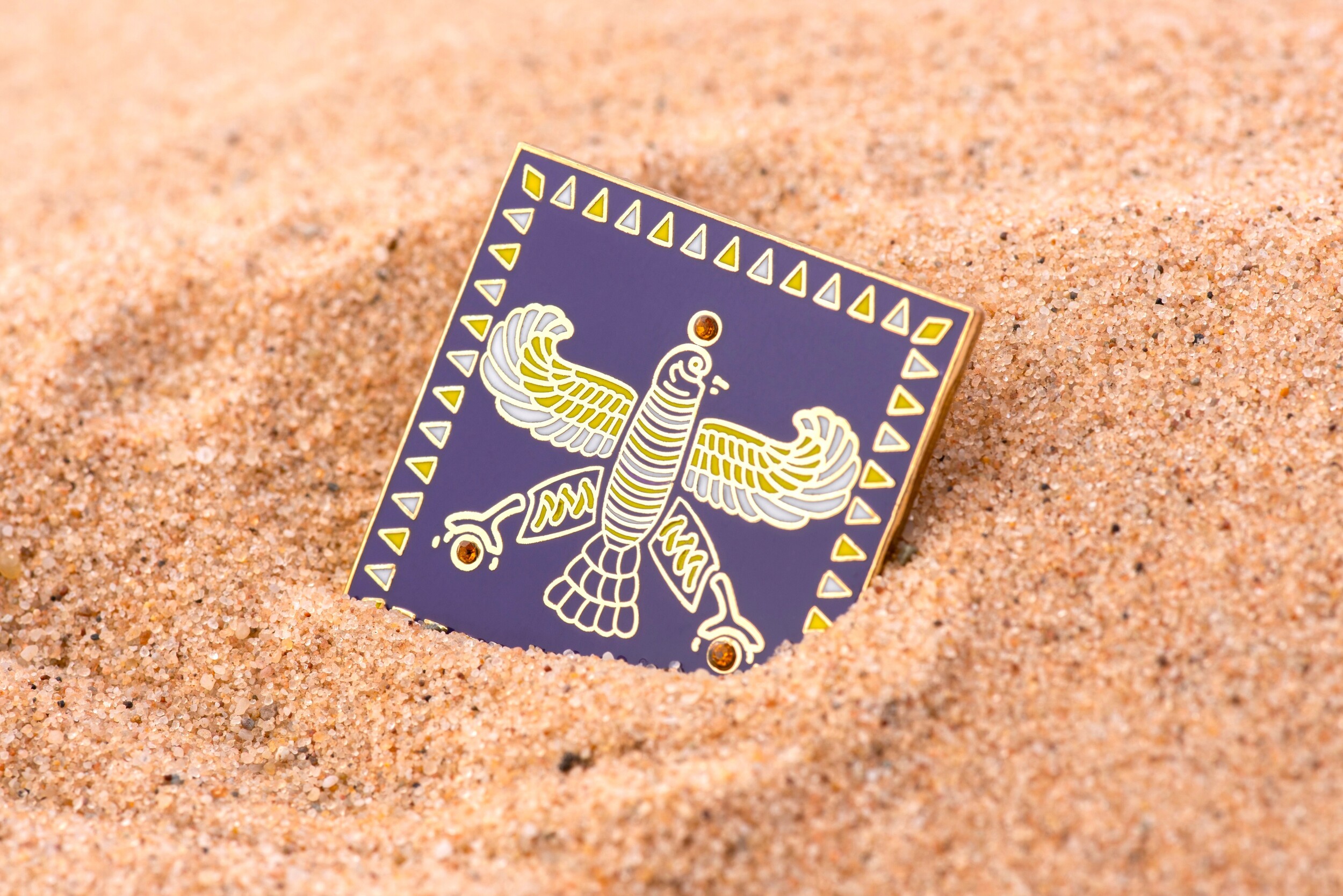 Badge. The Persian Falcon. Purple with 3 Yellow Stones.