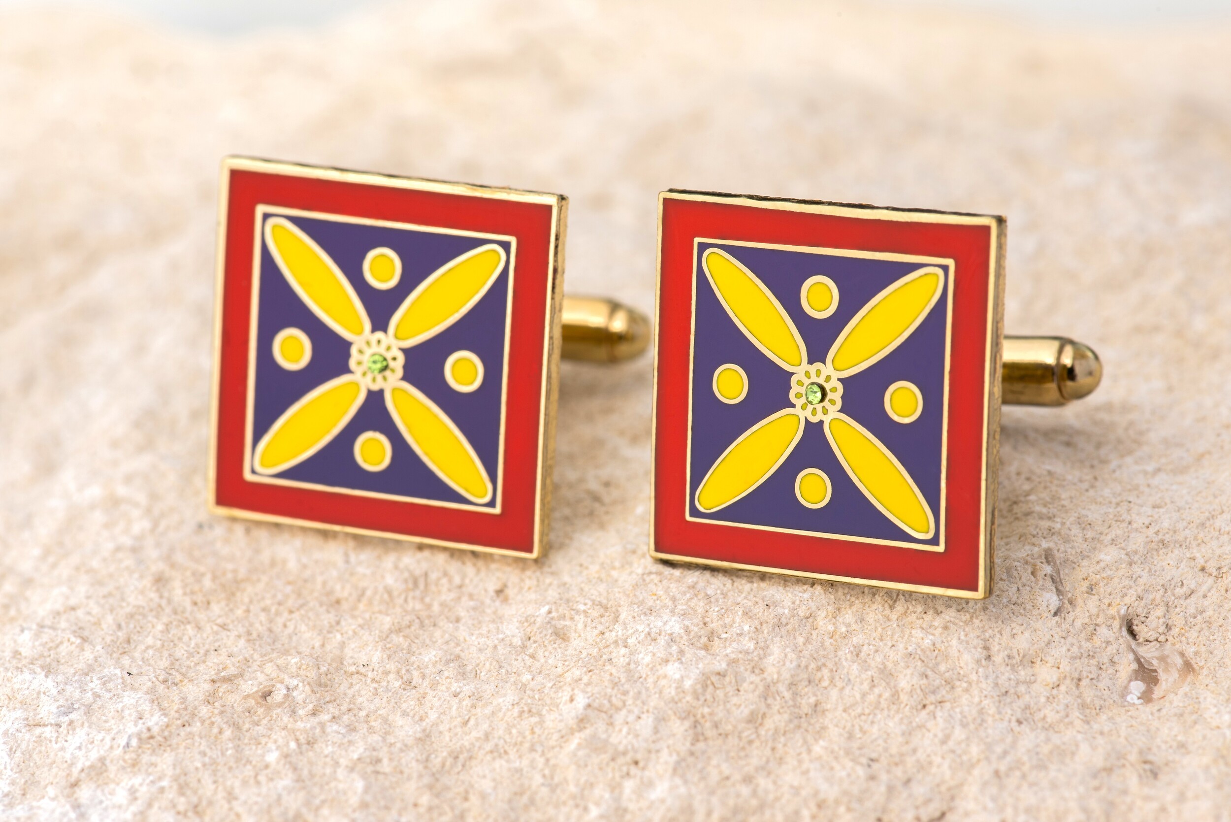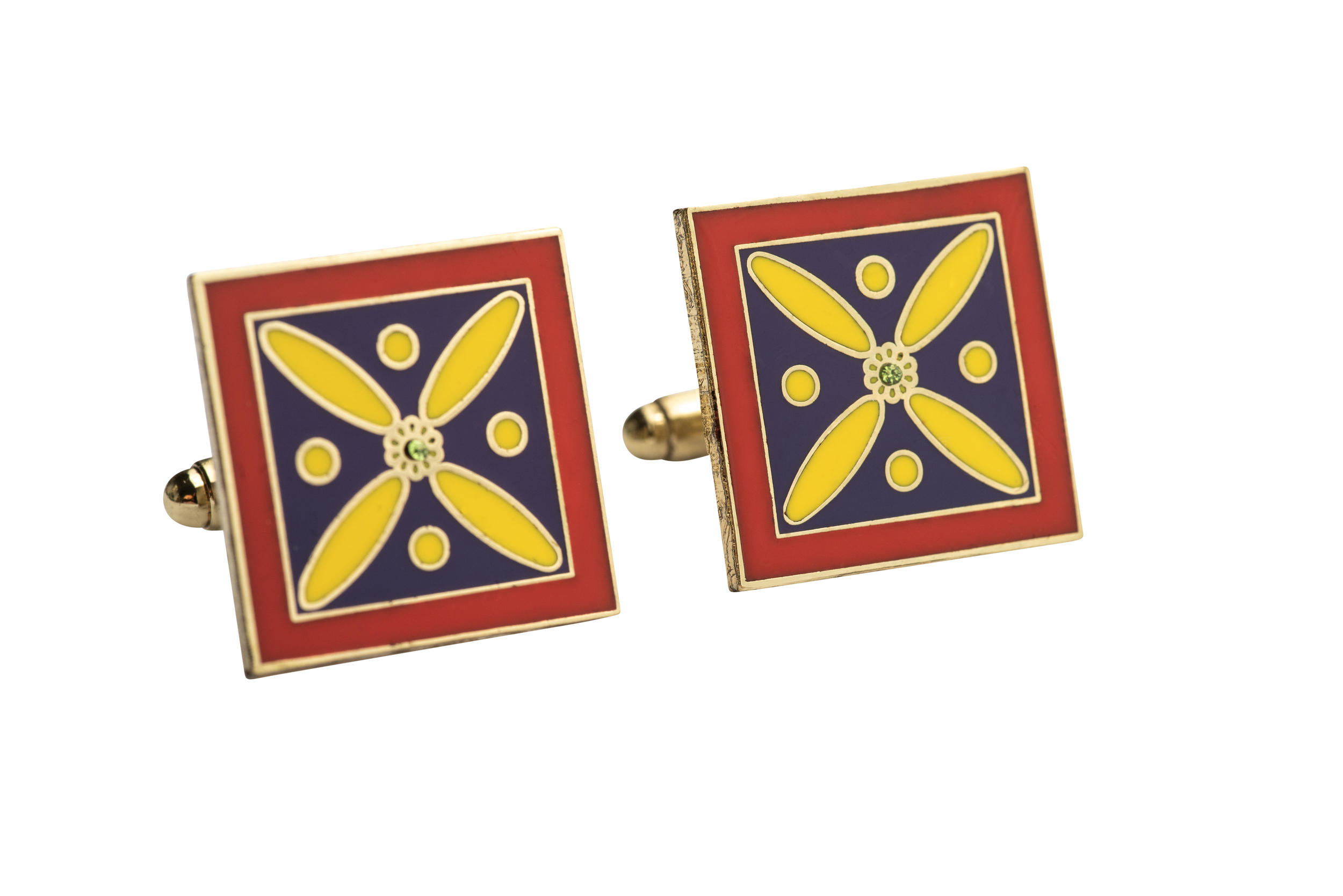 Cufflinks. The Persian Cross. Multi-coloured Cross with 1 Central Green stone. Original Pattern.
