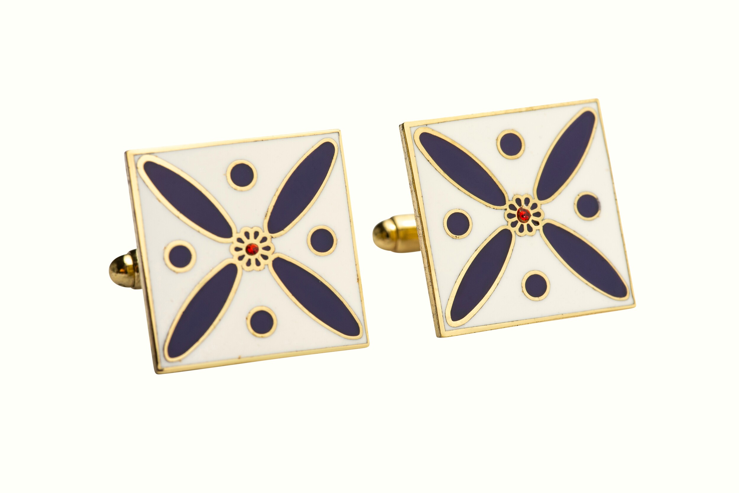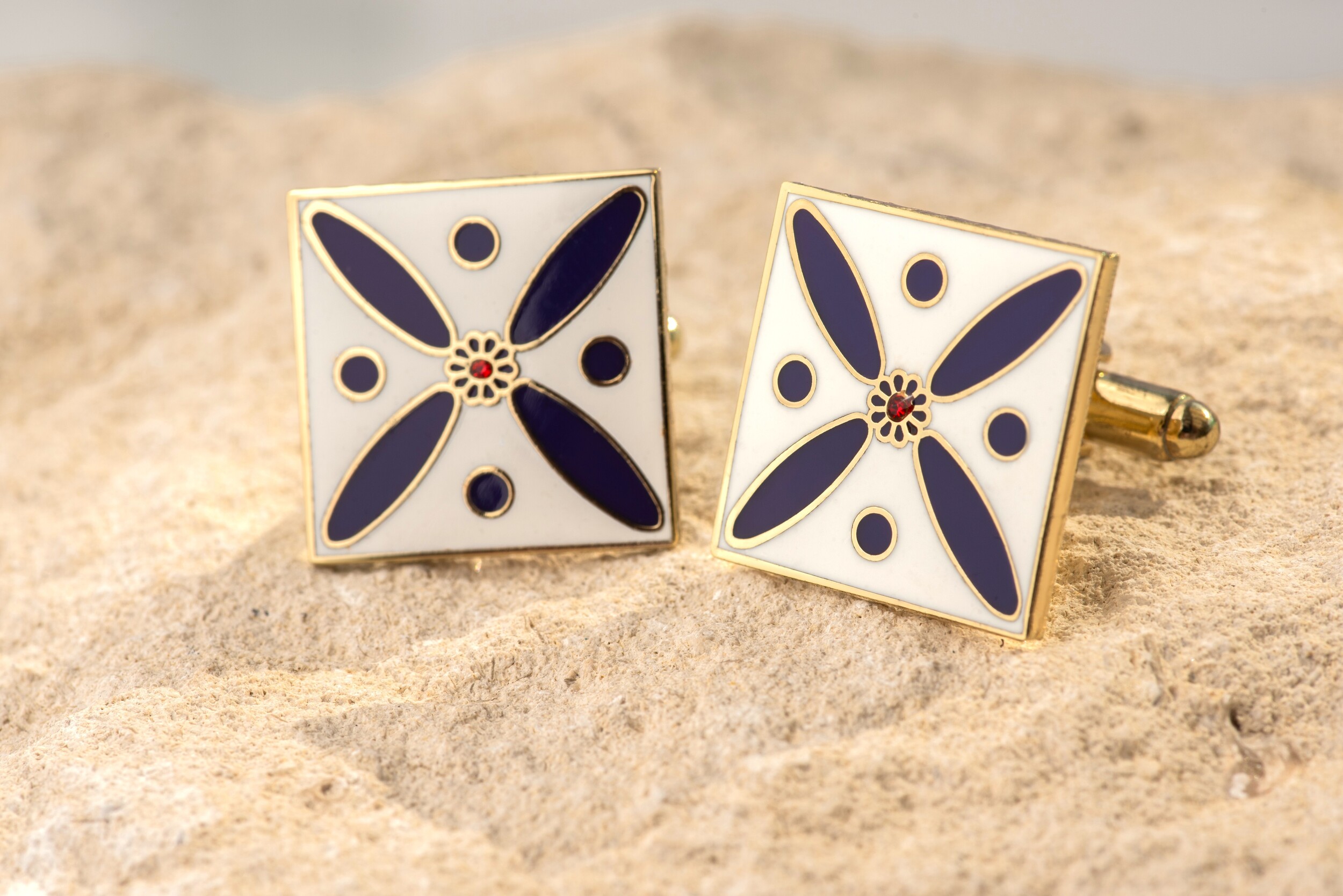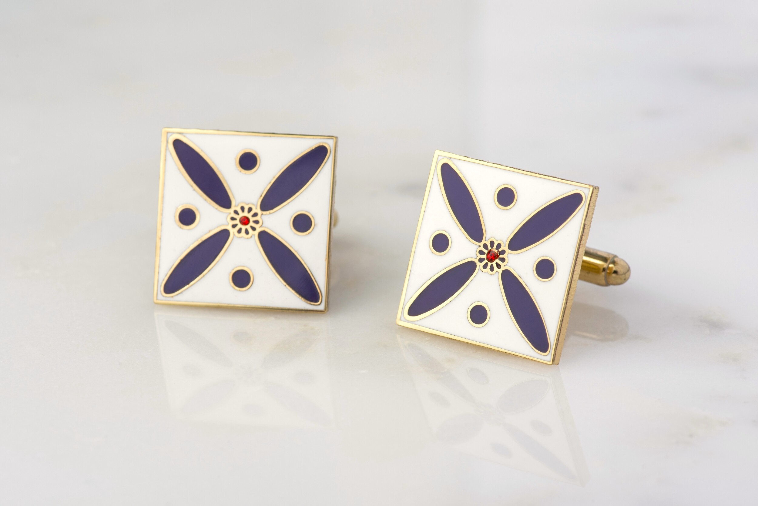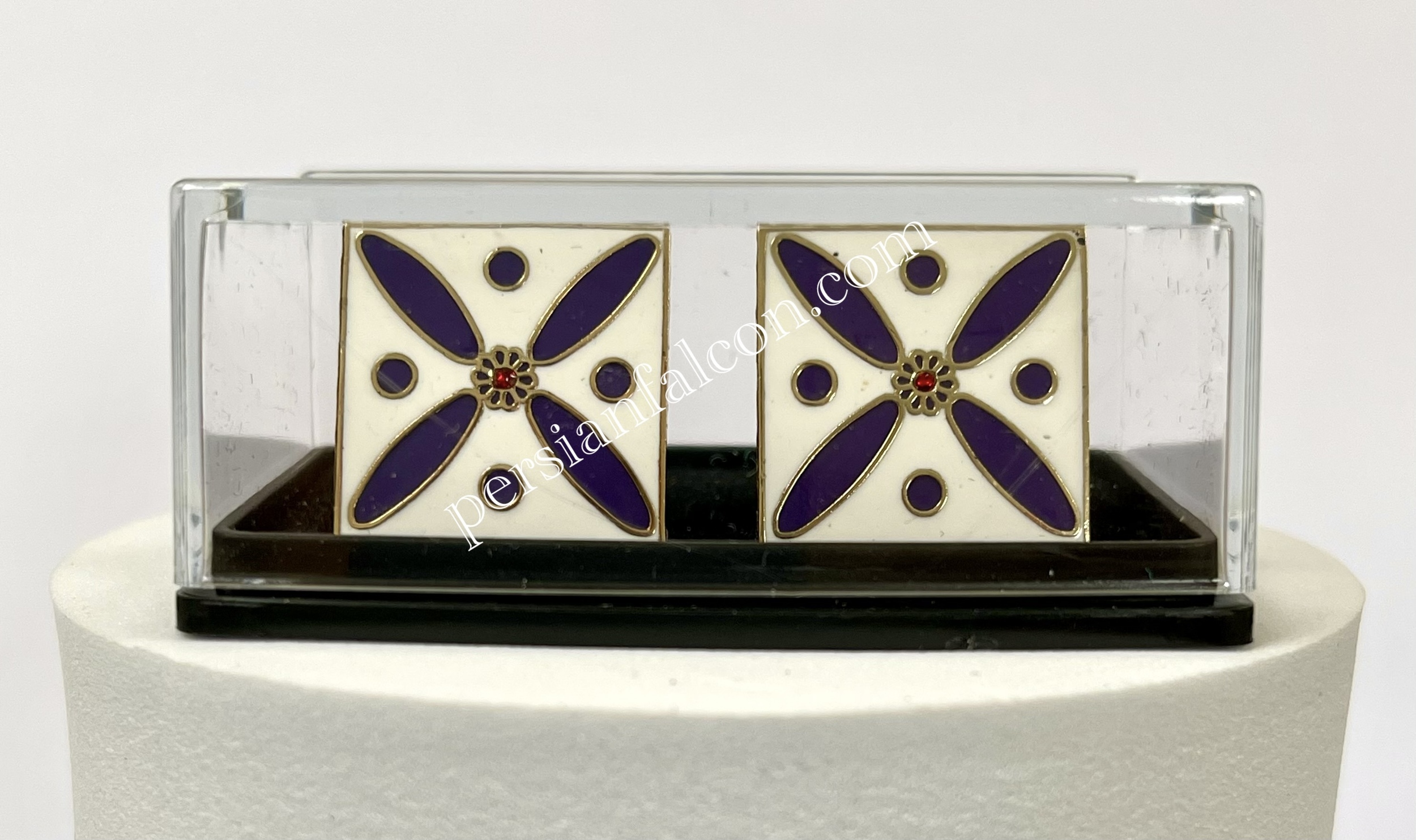 Cufflinks. The Persian Cross. Purple on White with 1 Central Red Stone.
