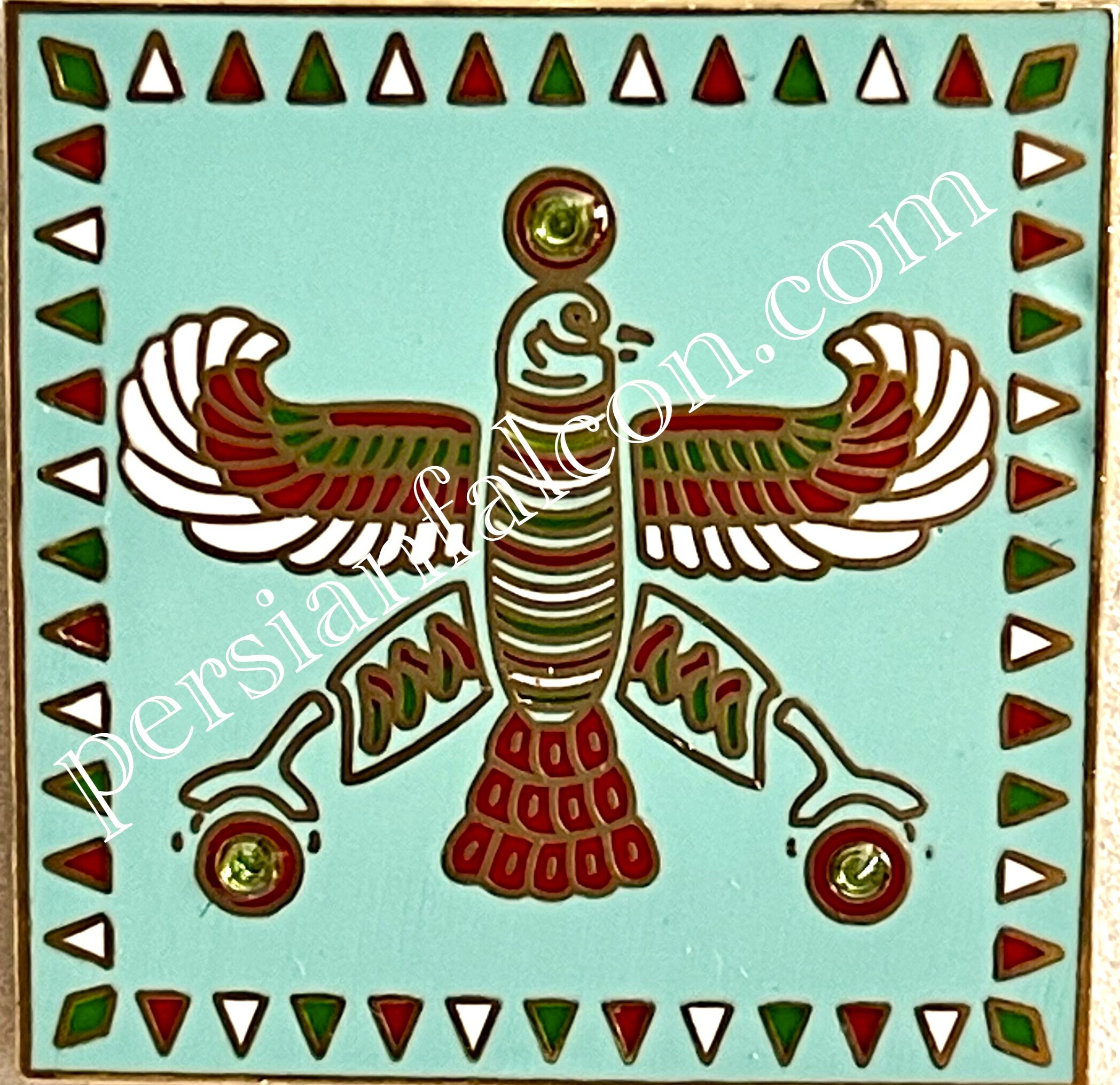 Badge. The Persian Falcon. Blue Turquoise with 3 Green Stones.