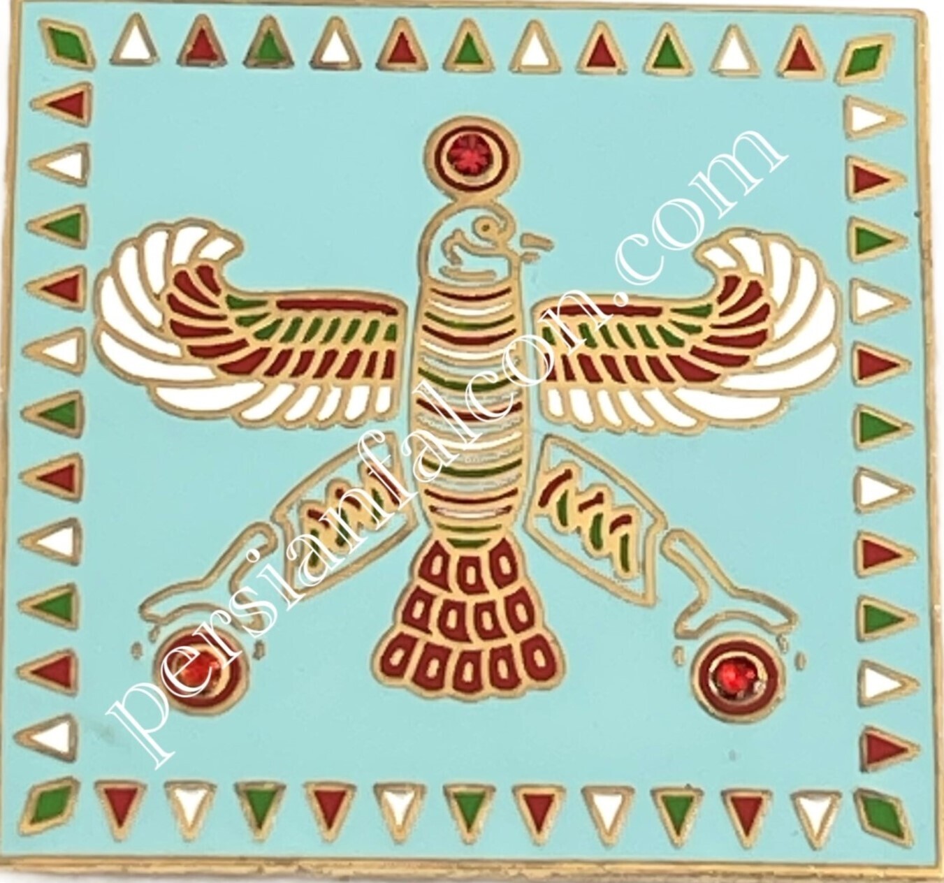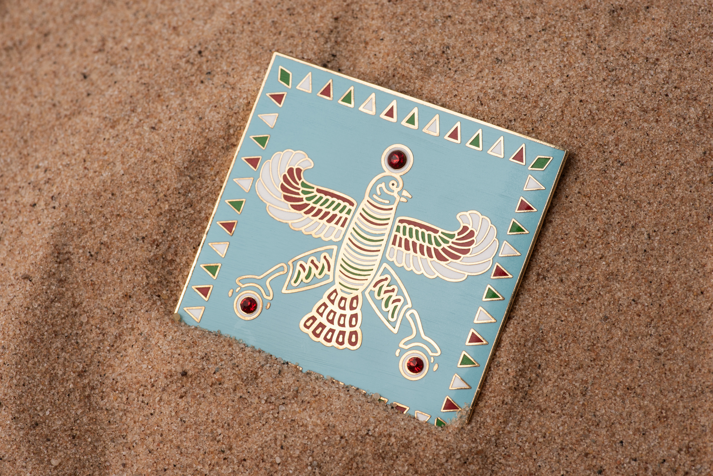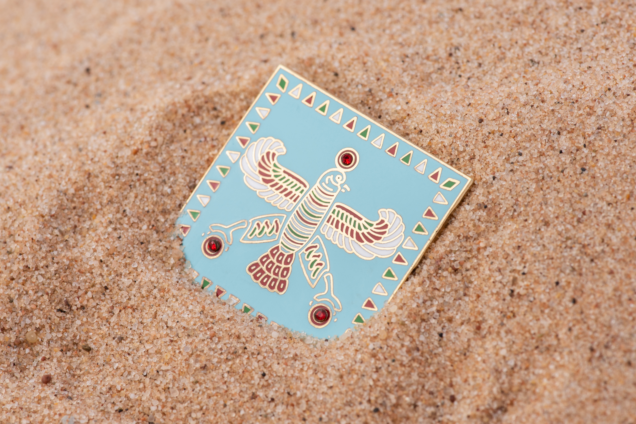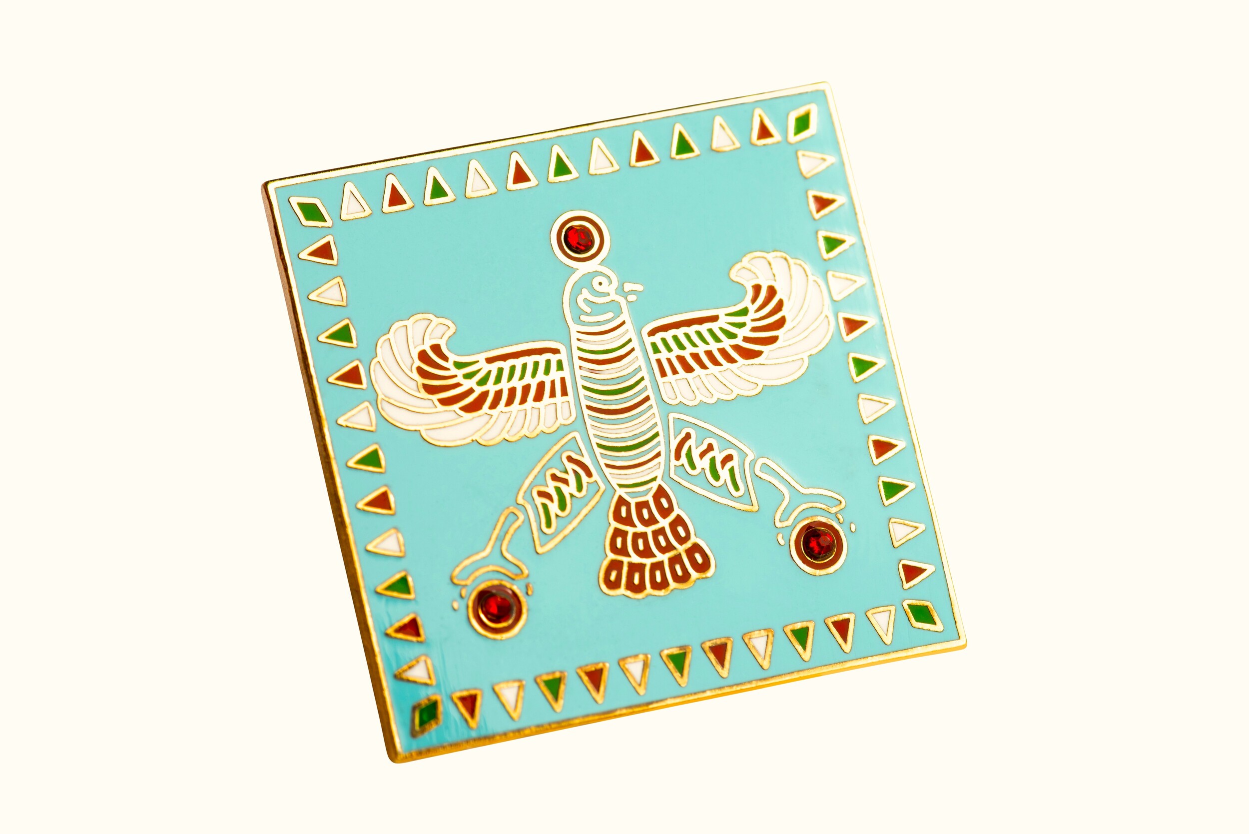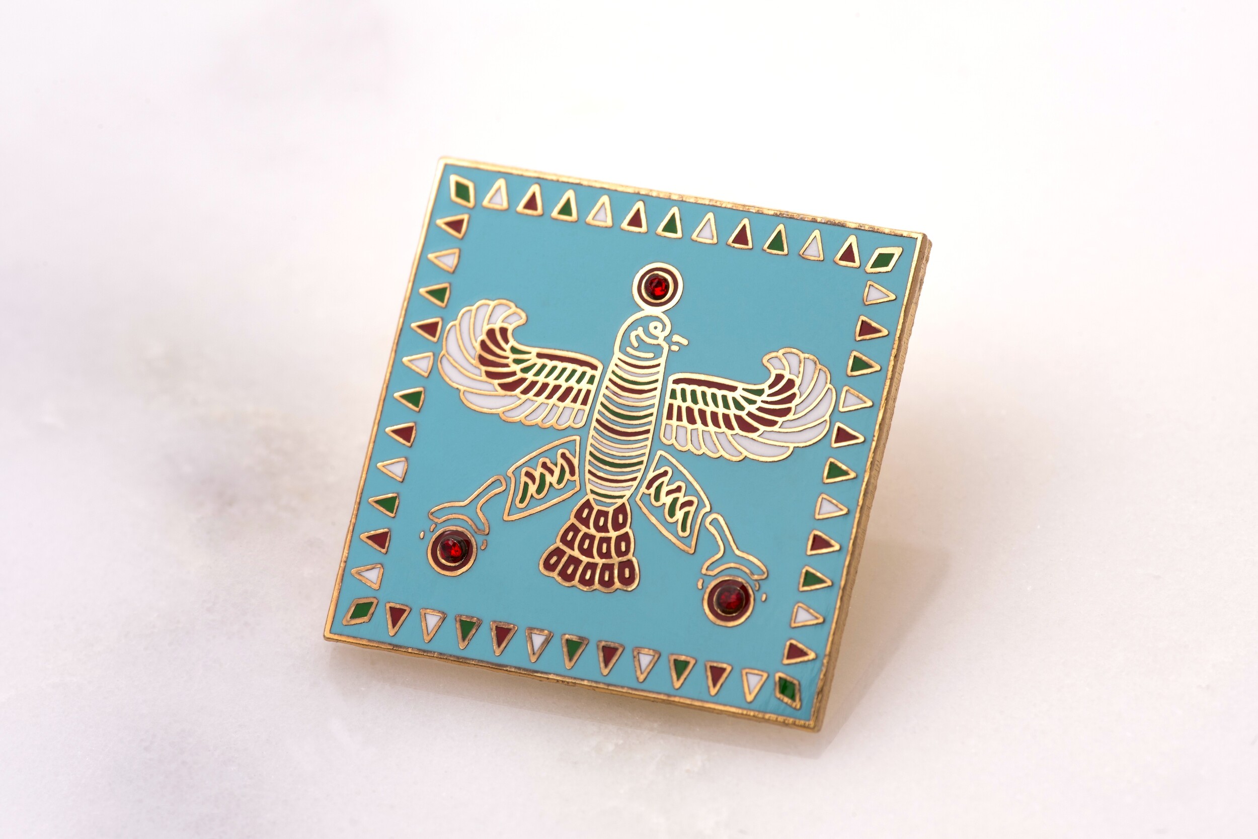 The Persian Falcon Enamel Badge – Blue Turquoise with 3 Red Stones