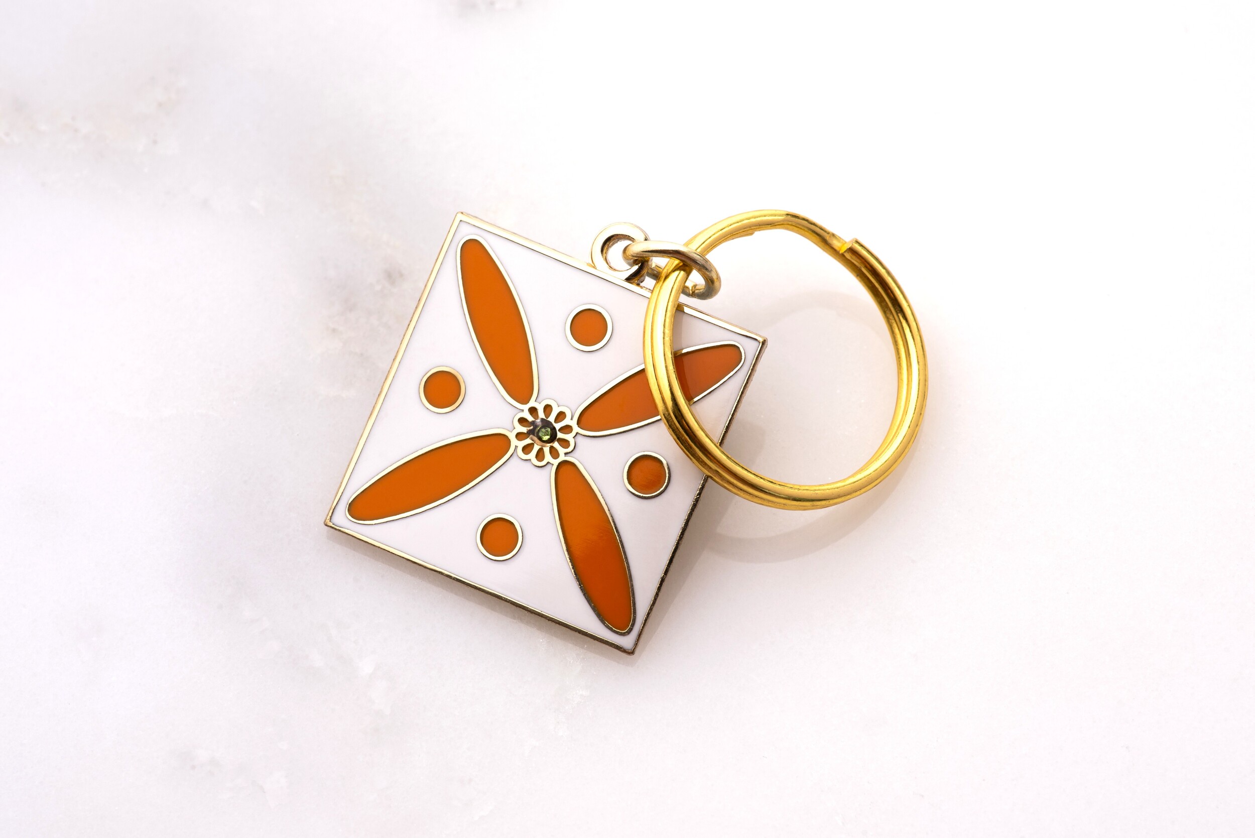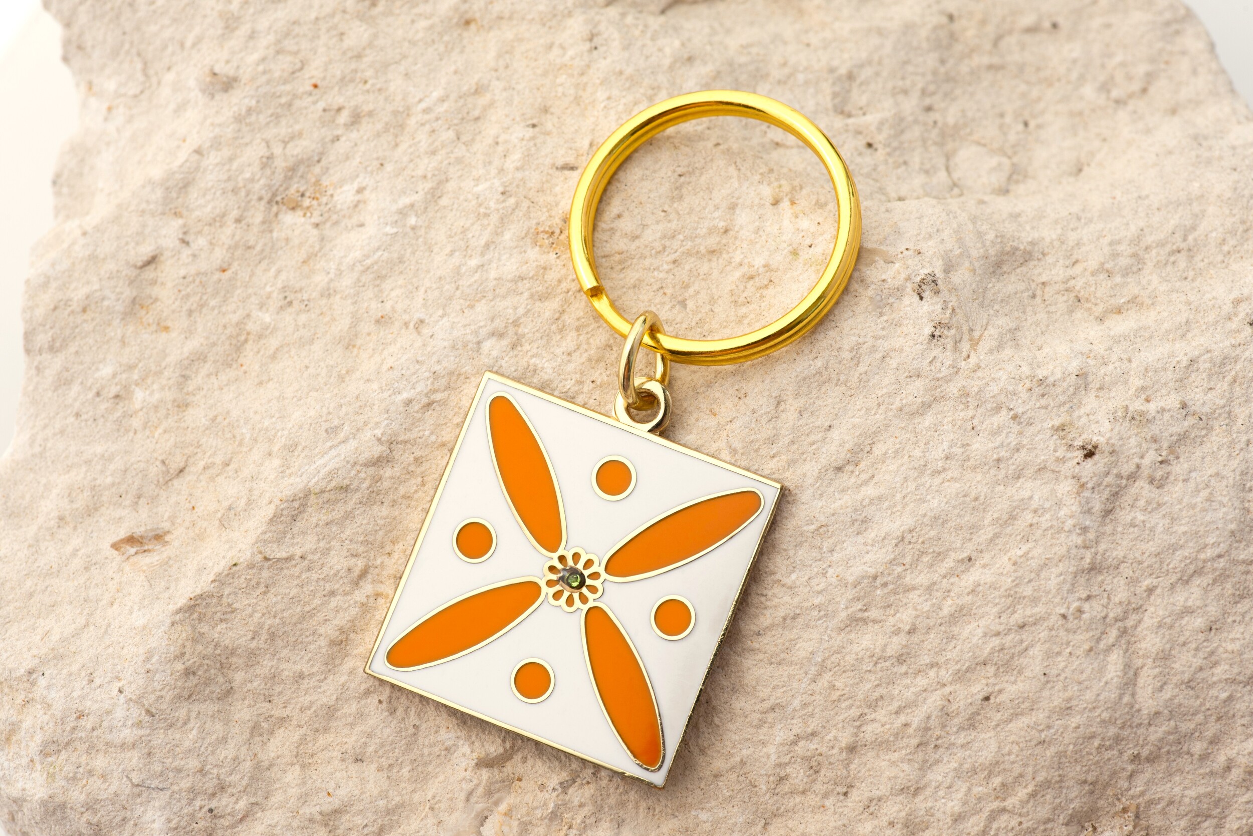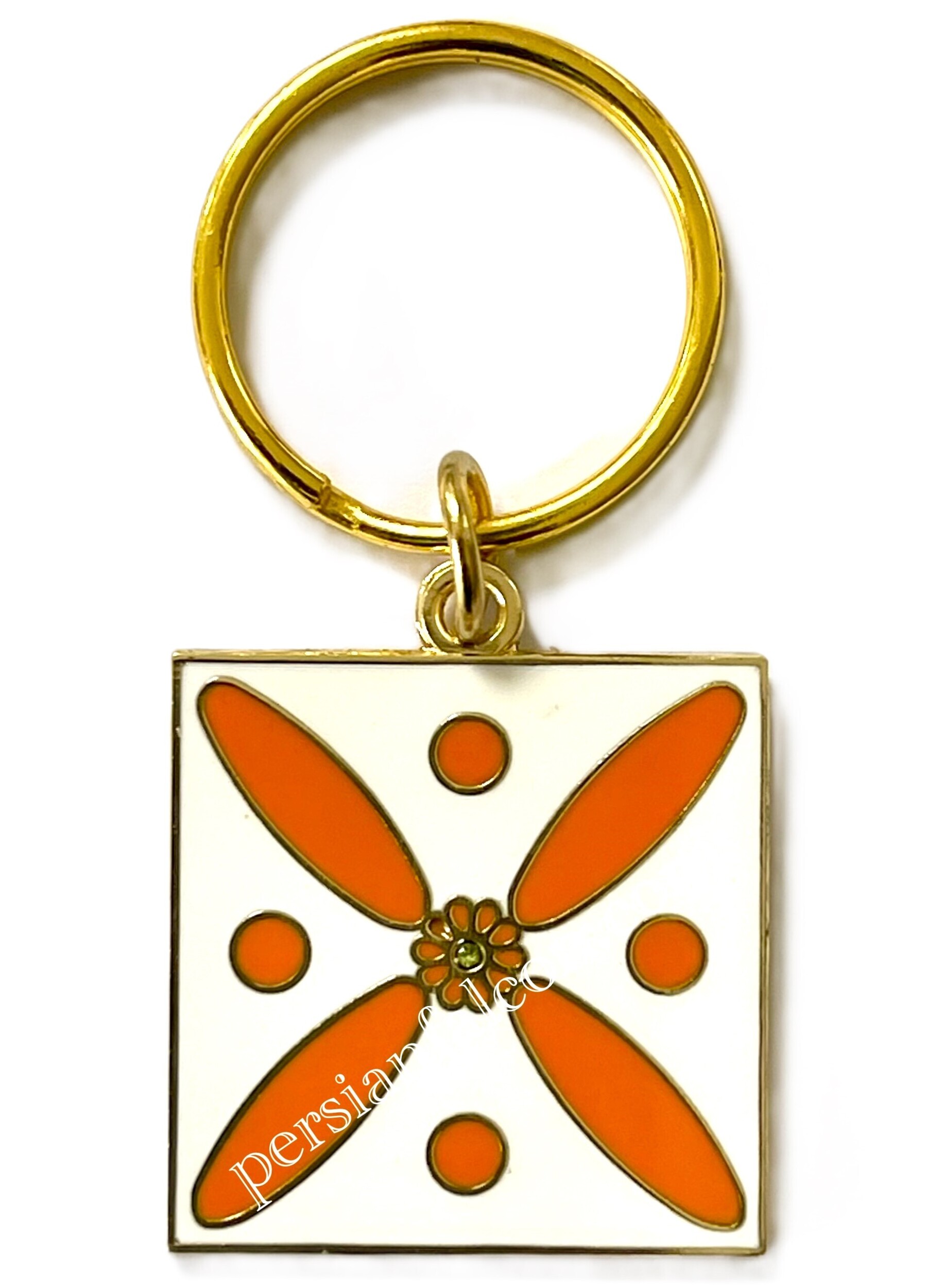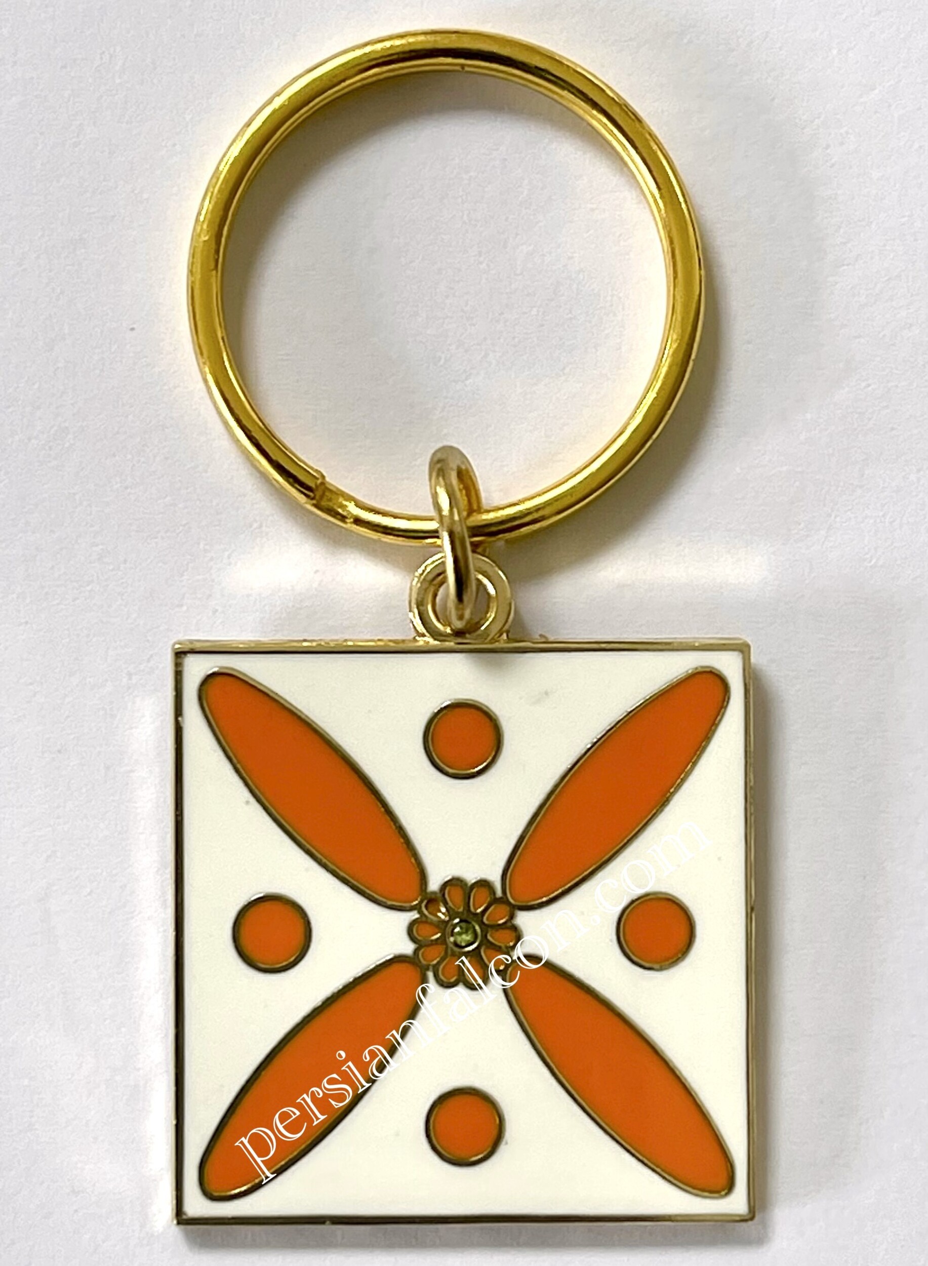Charm. The Persian Cross. Orange on White with 1 Central Green Stone.