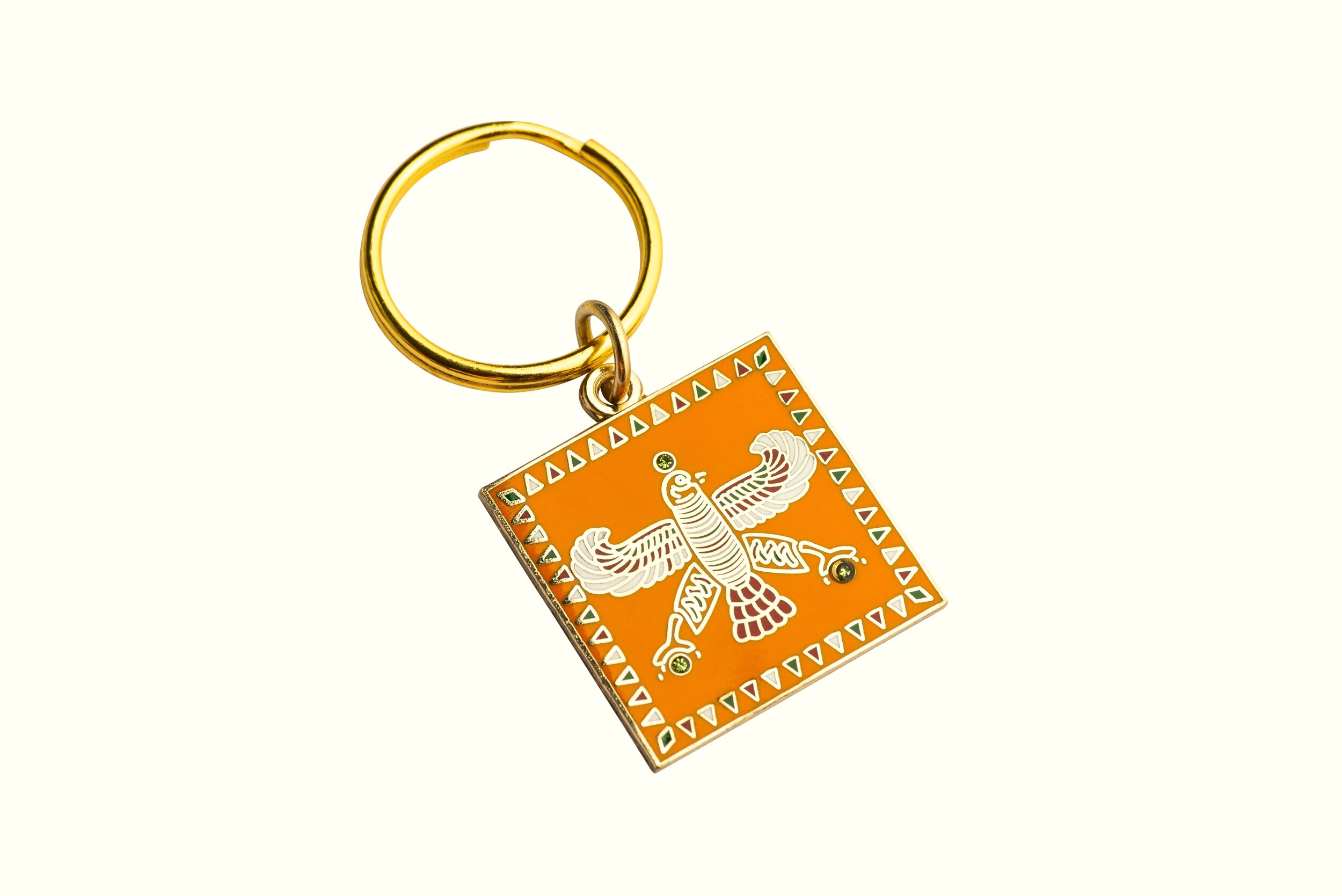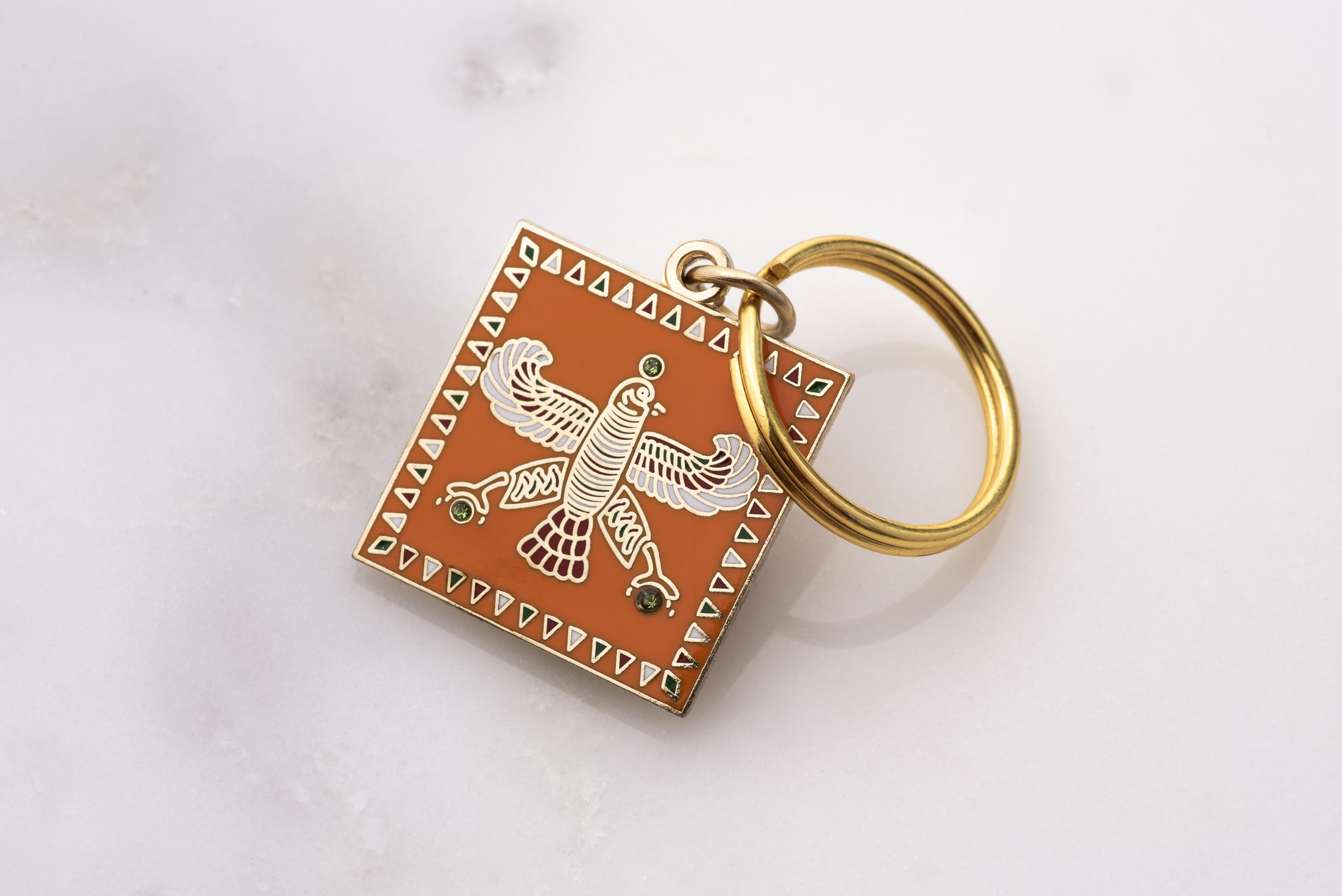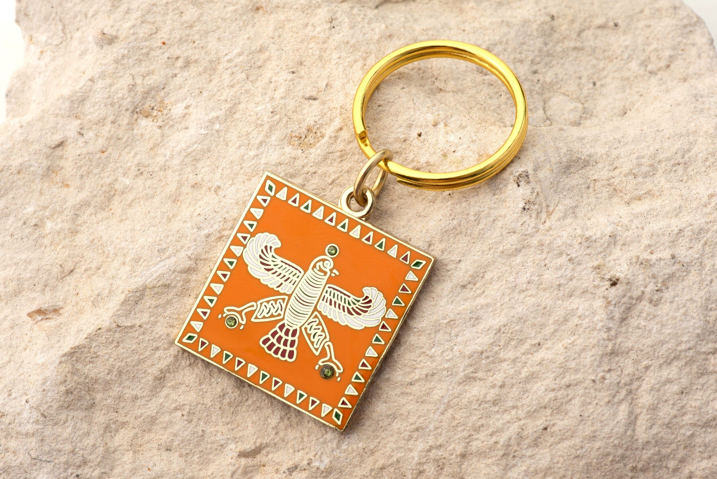 The Persian Falcon Enamel Charm is a beautifully crafted piece inspired by the Shahbaz Falcon, a symbol of strength and freedom from the Achaemenid era. Designed to honor the legacy of Cyrus the Great, this gold-plated charm blends history with timeless elegance.