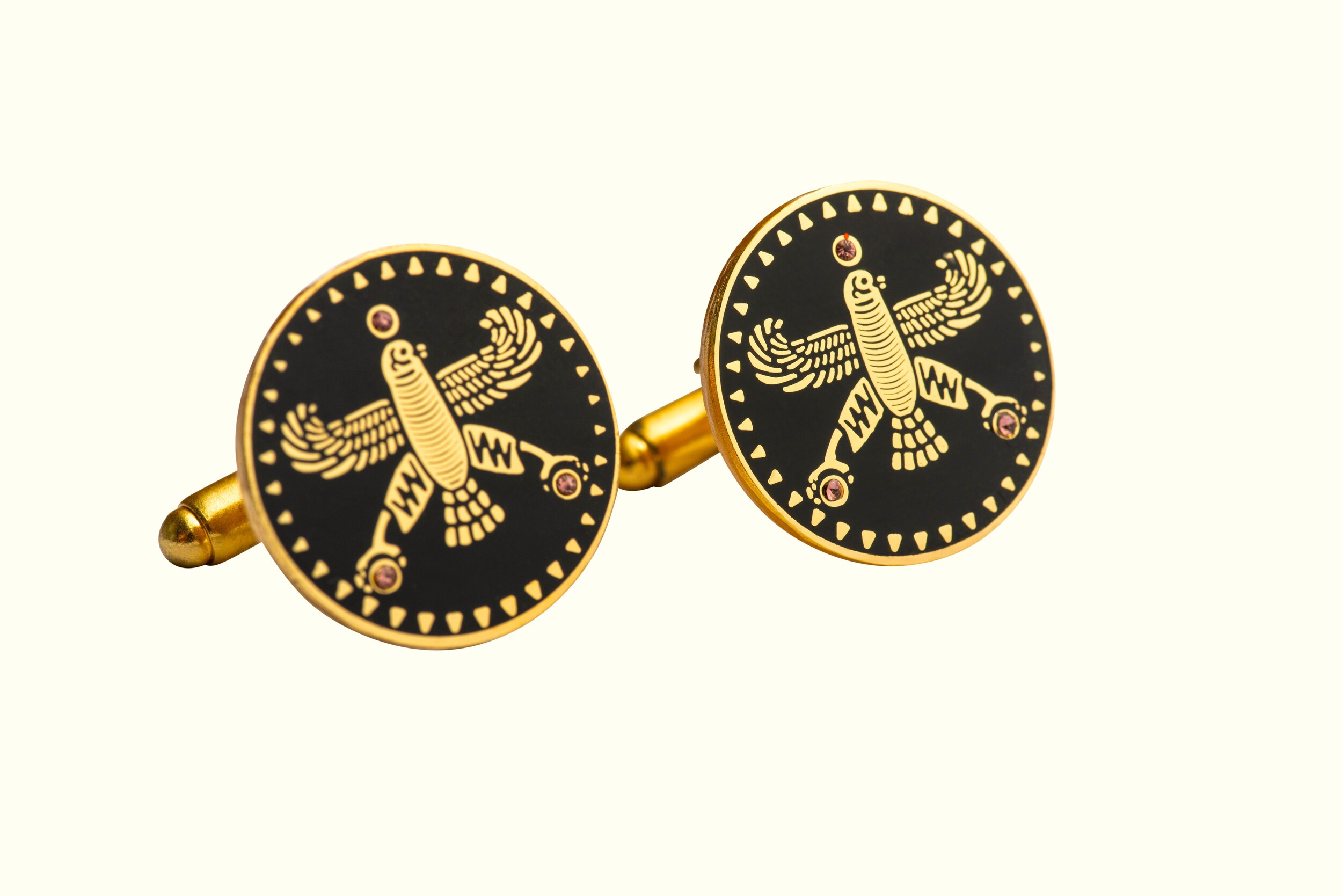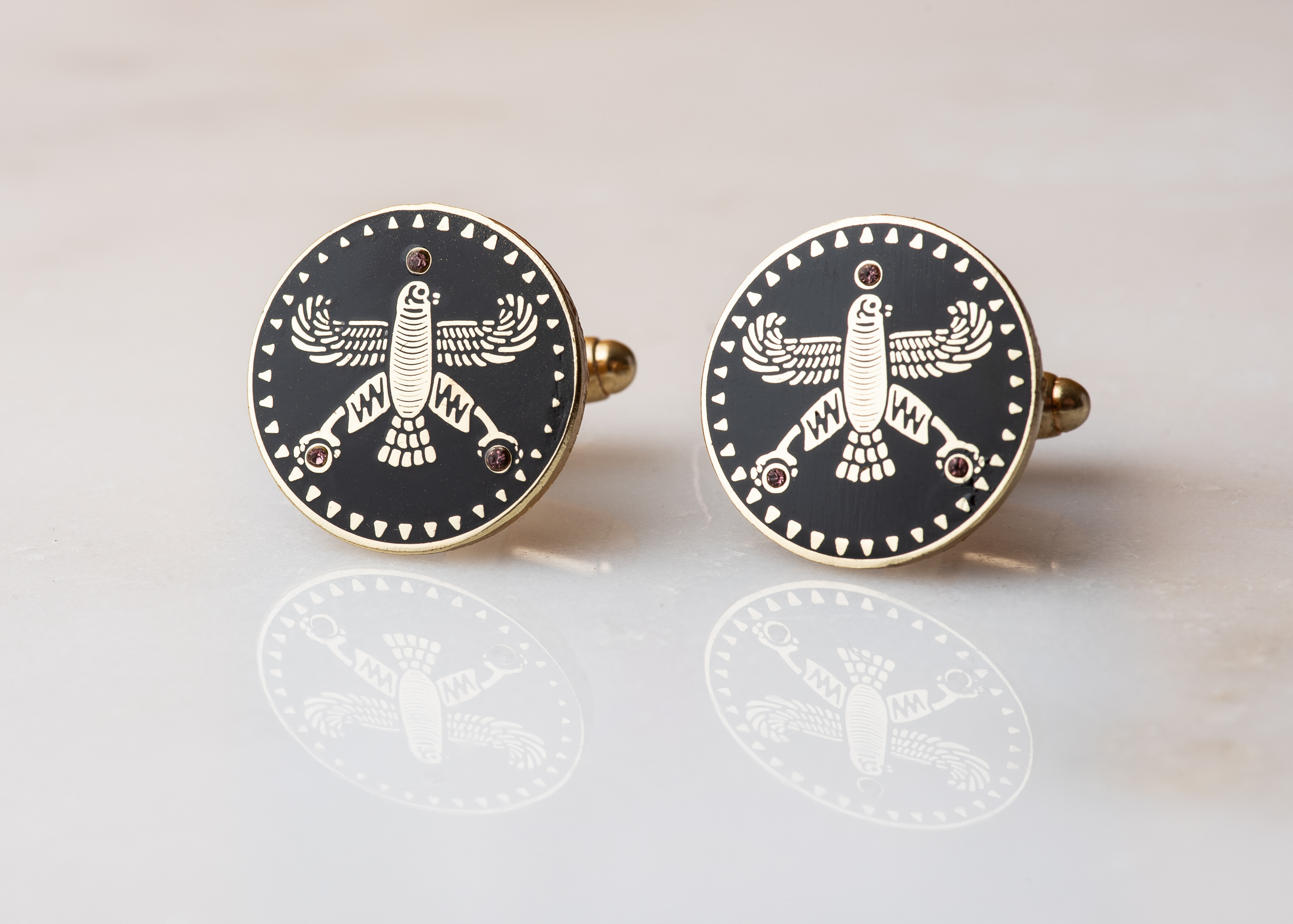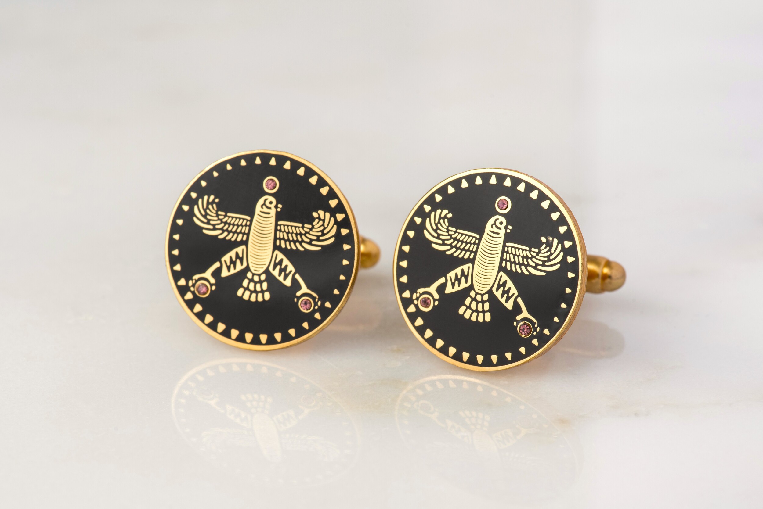 Persian Falcon Cufflinks – Black Enamel with 3 White Stones