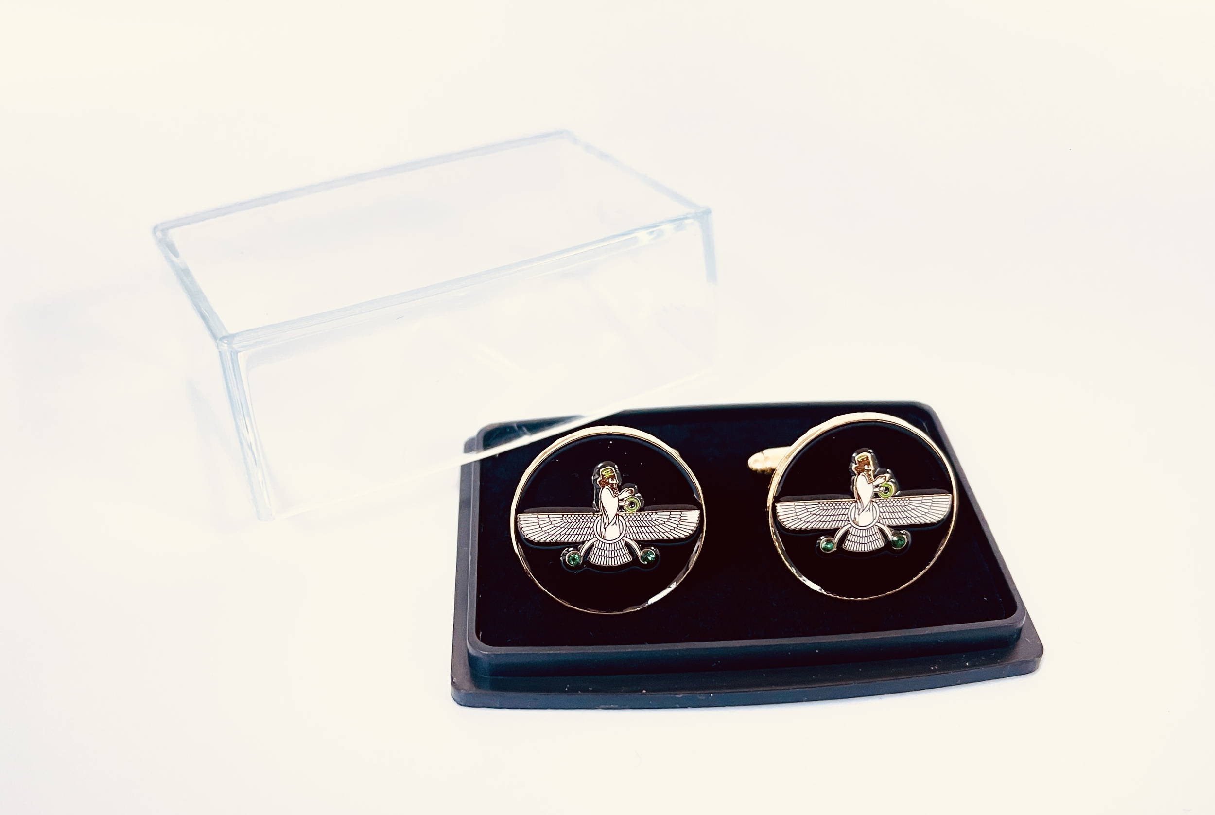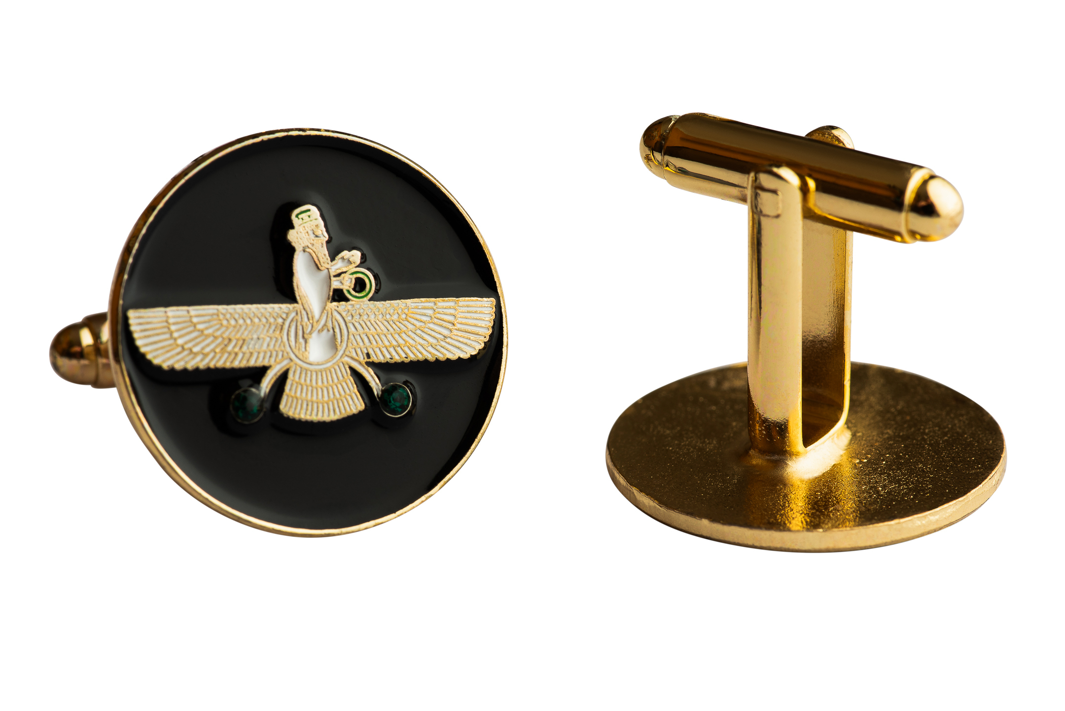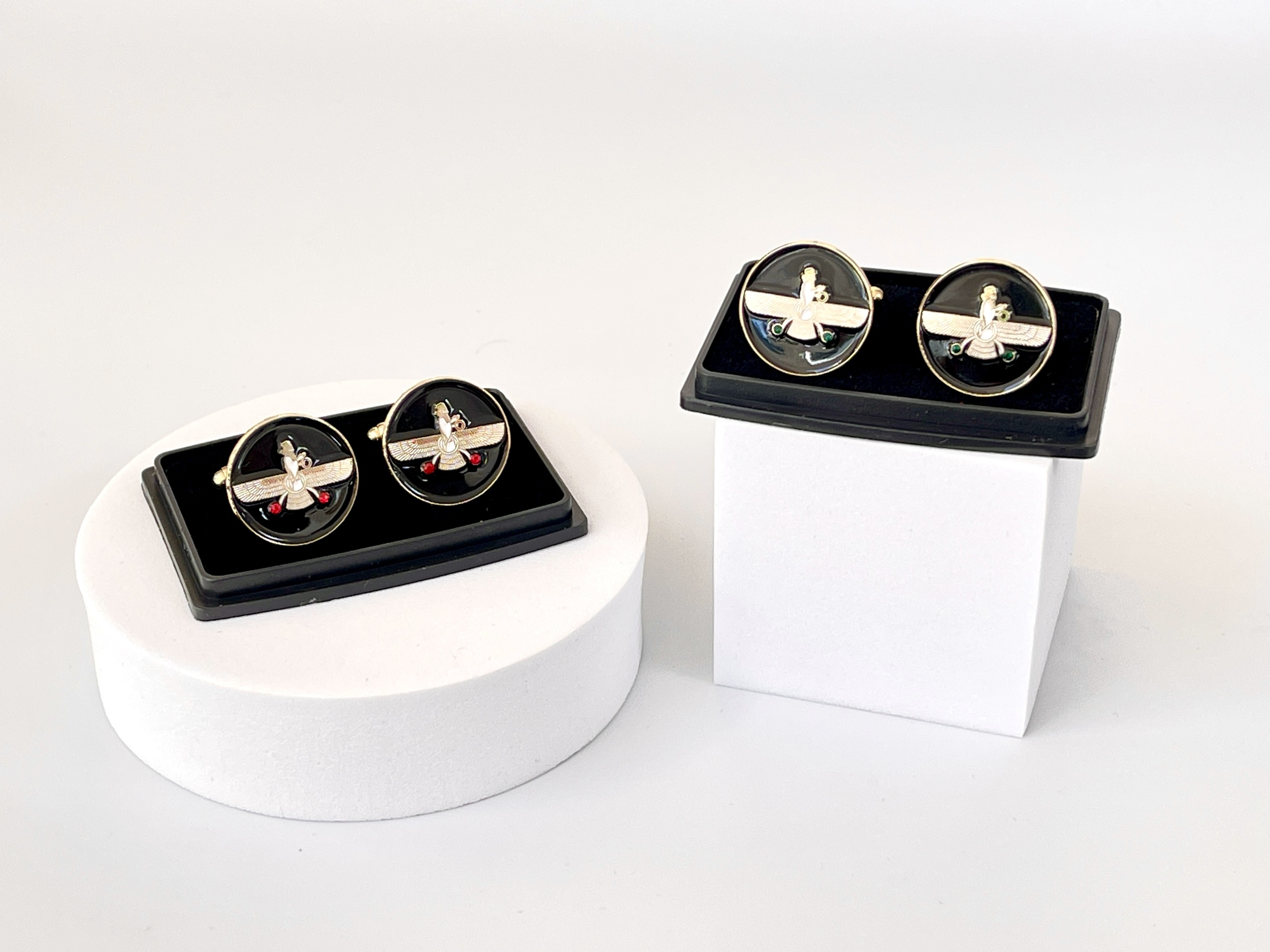 Farvahar Design Cufflinks ⚜️✨ | Black with 2 Green Stones 🟢🟢
