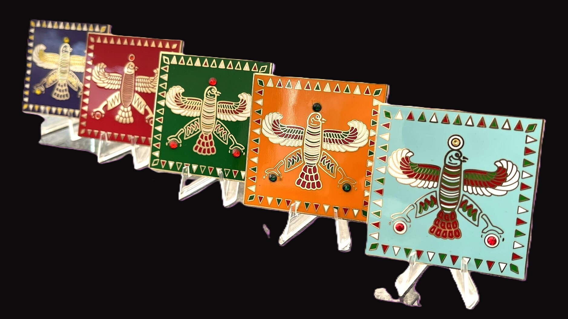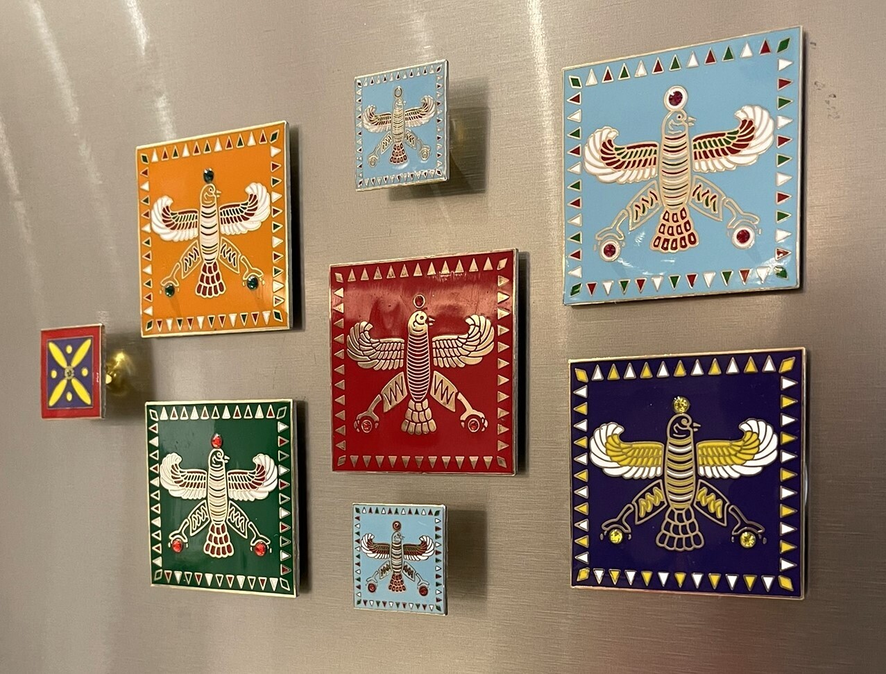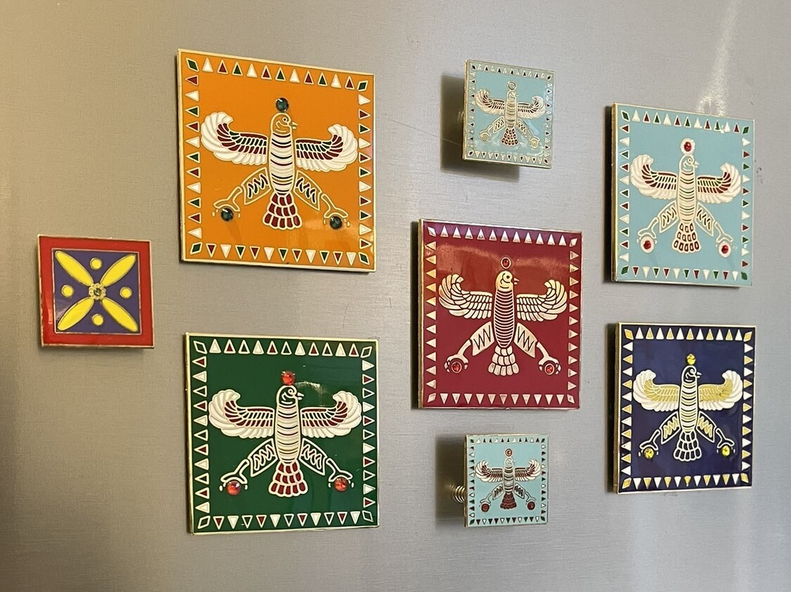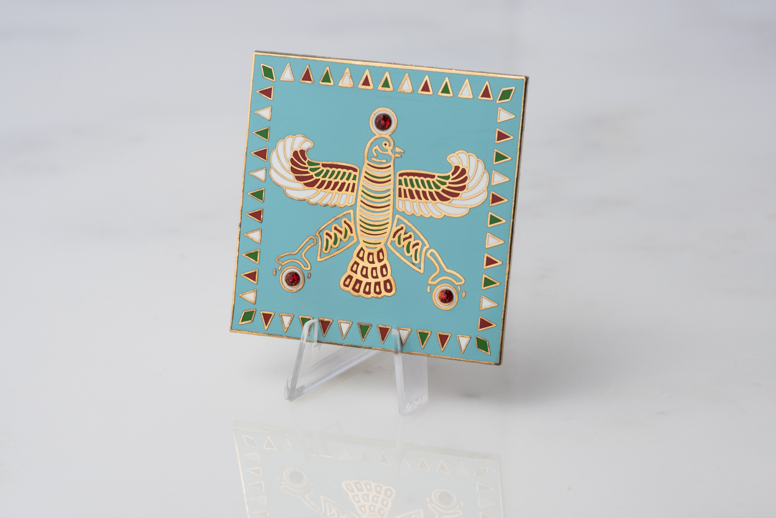Display & Magnet Tile. The Persian Falcon. Turquoise Blue with 3 Red Stones.