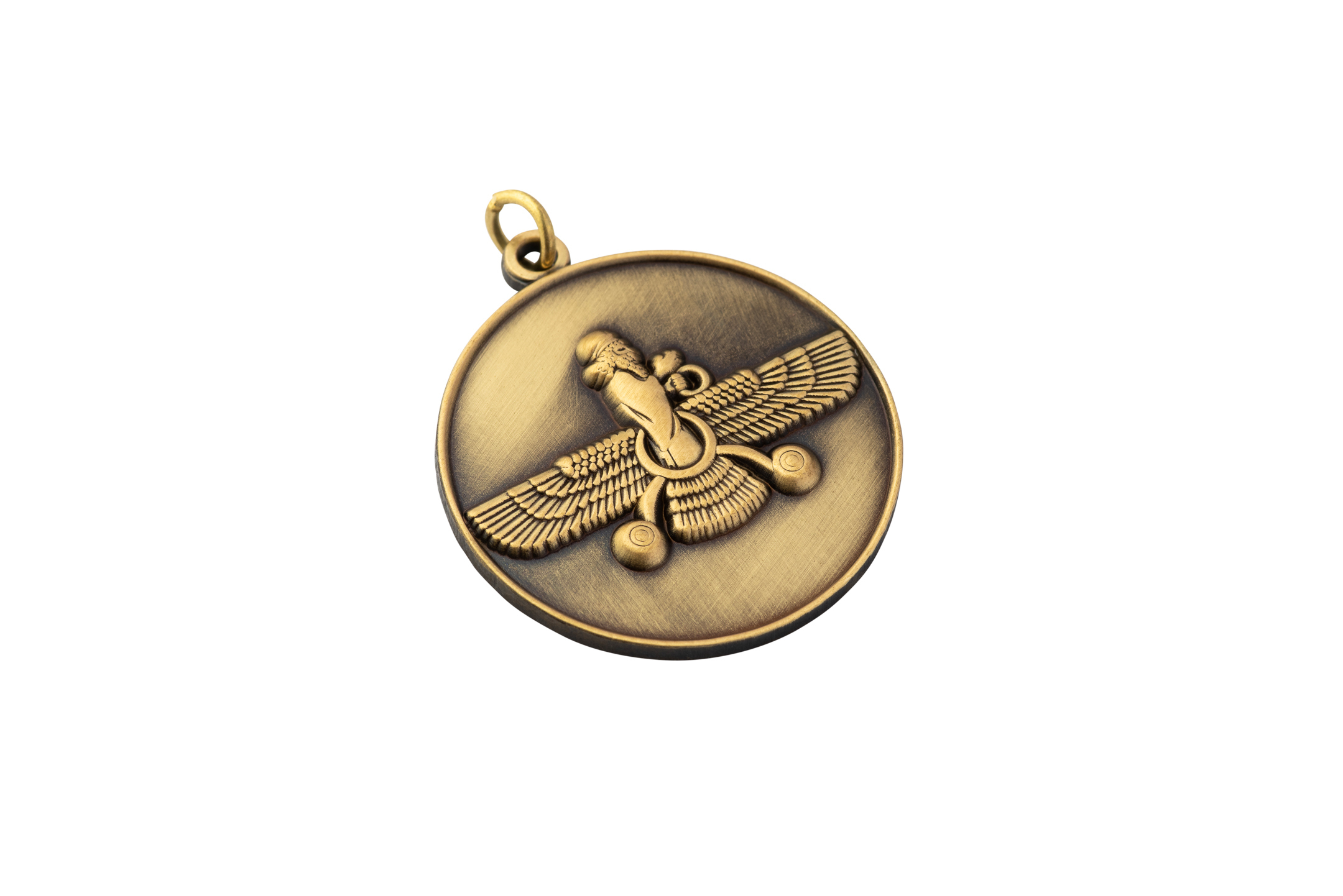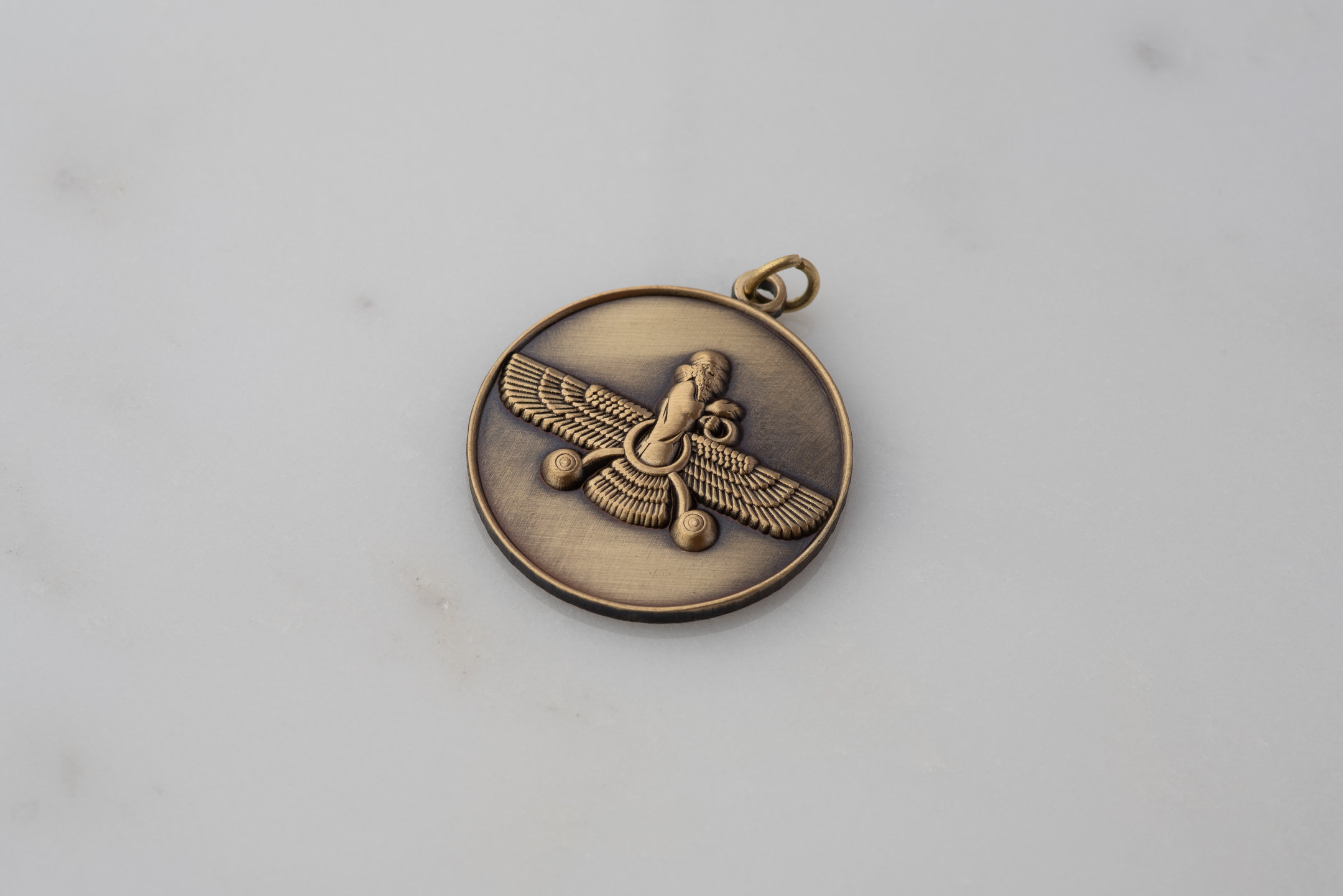 🪬 Round Pendant - Vintage Bronze Farvahar Design | PersianFalcon