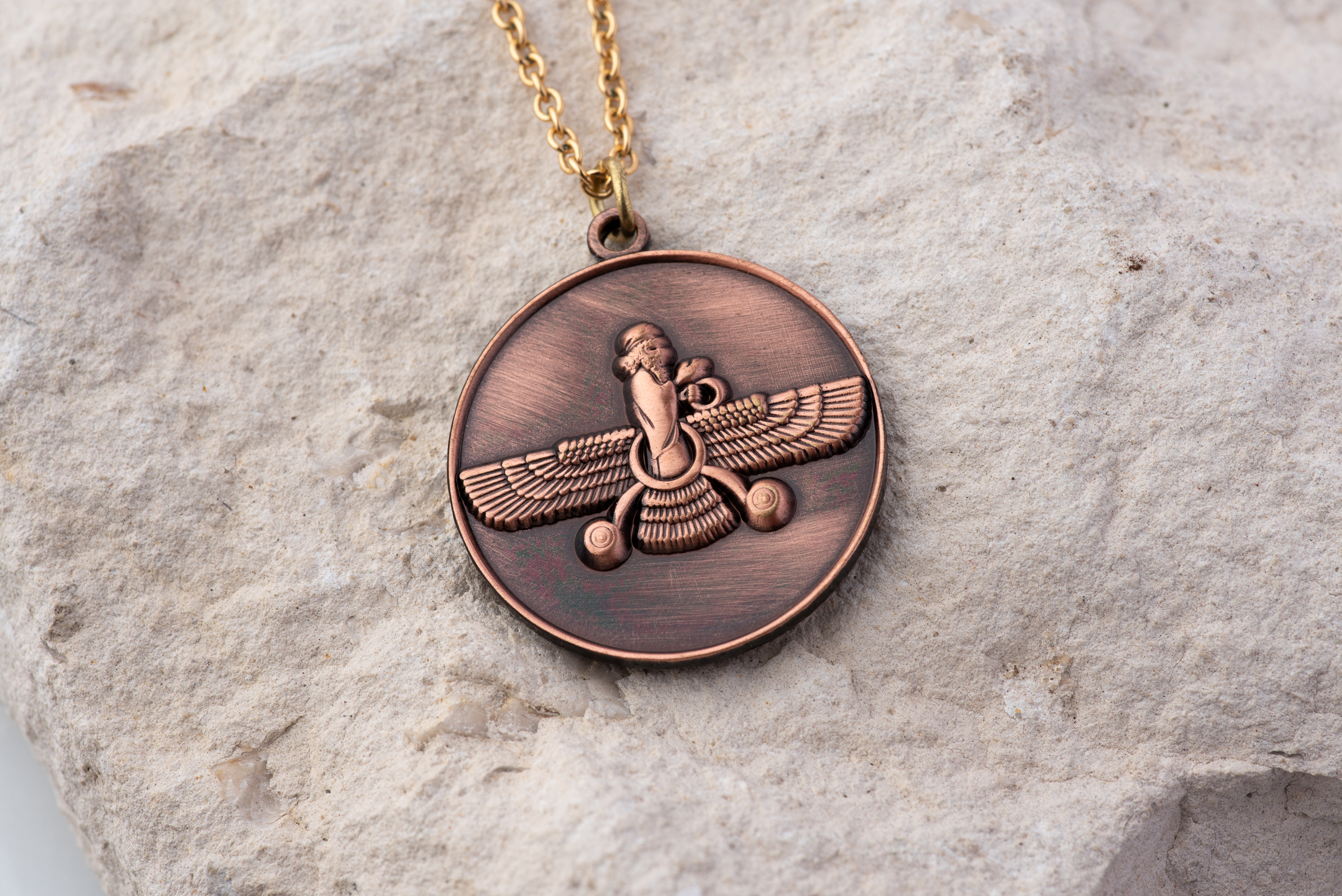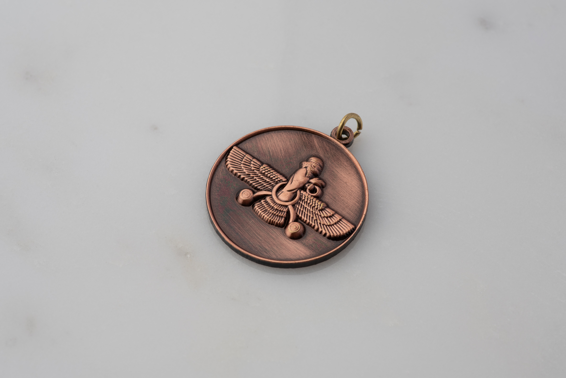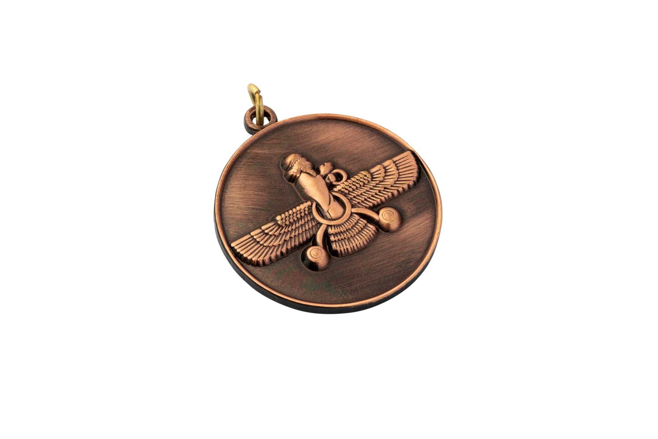 🪬 Round Pendant - Vintage Copper Farvahar Design | PersianFalcon