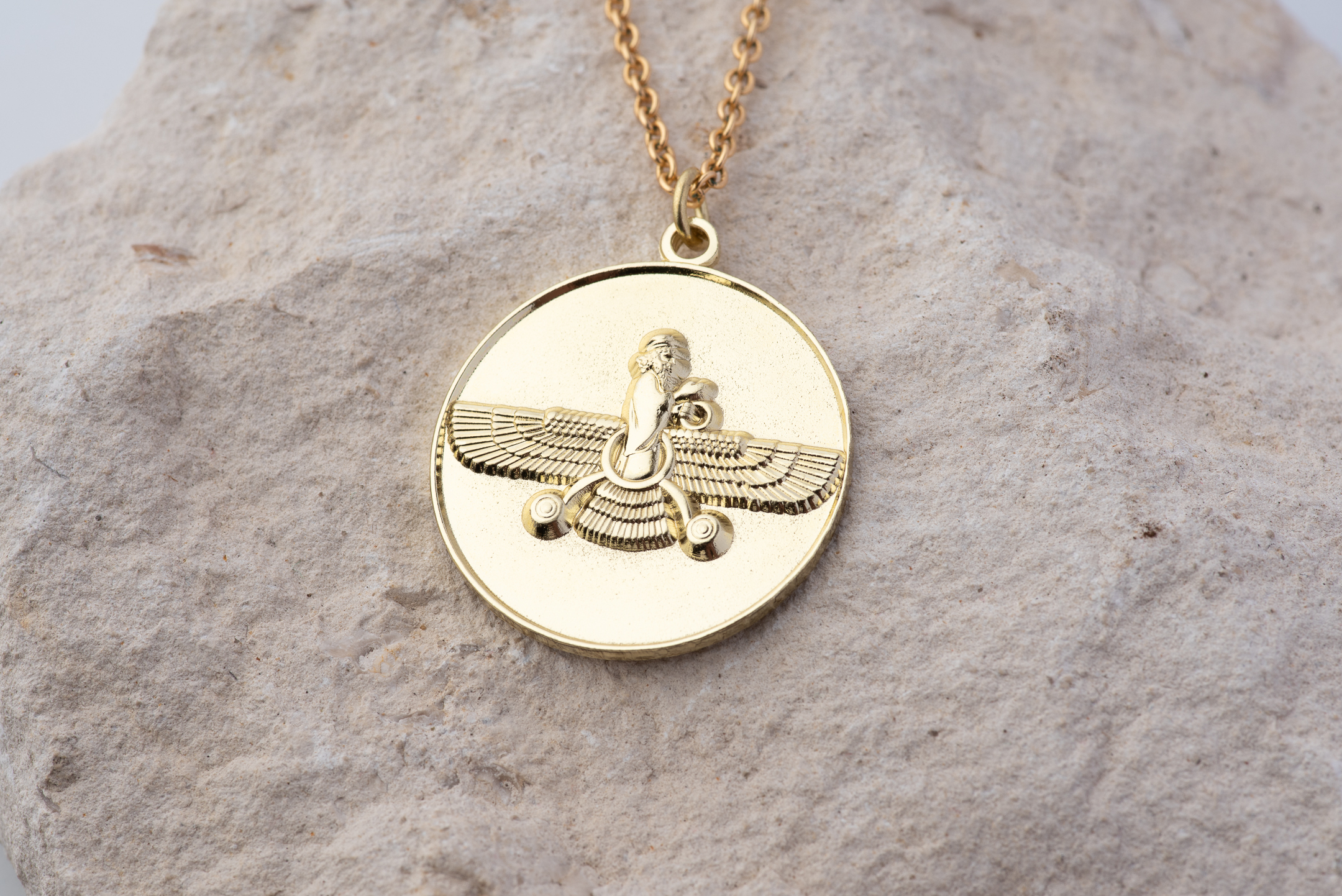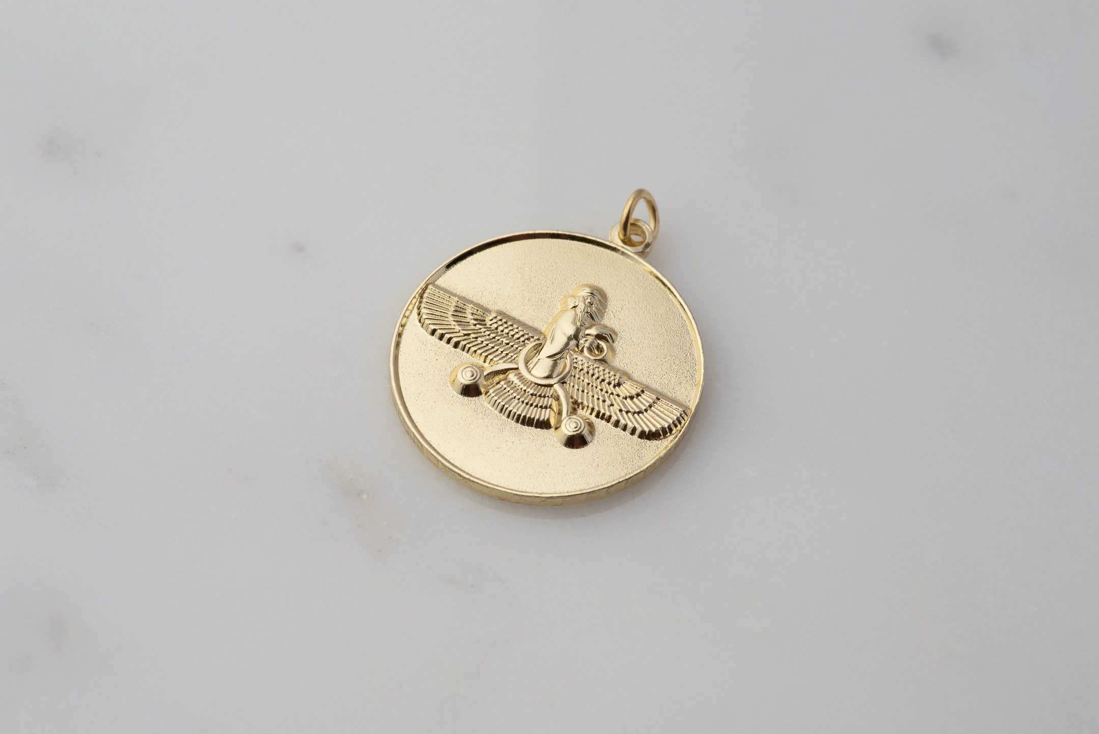 🪬 Round Pendant - Vintage Gold-Plated Farvahar Design | PersianFalcon