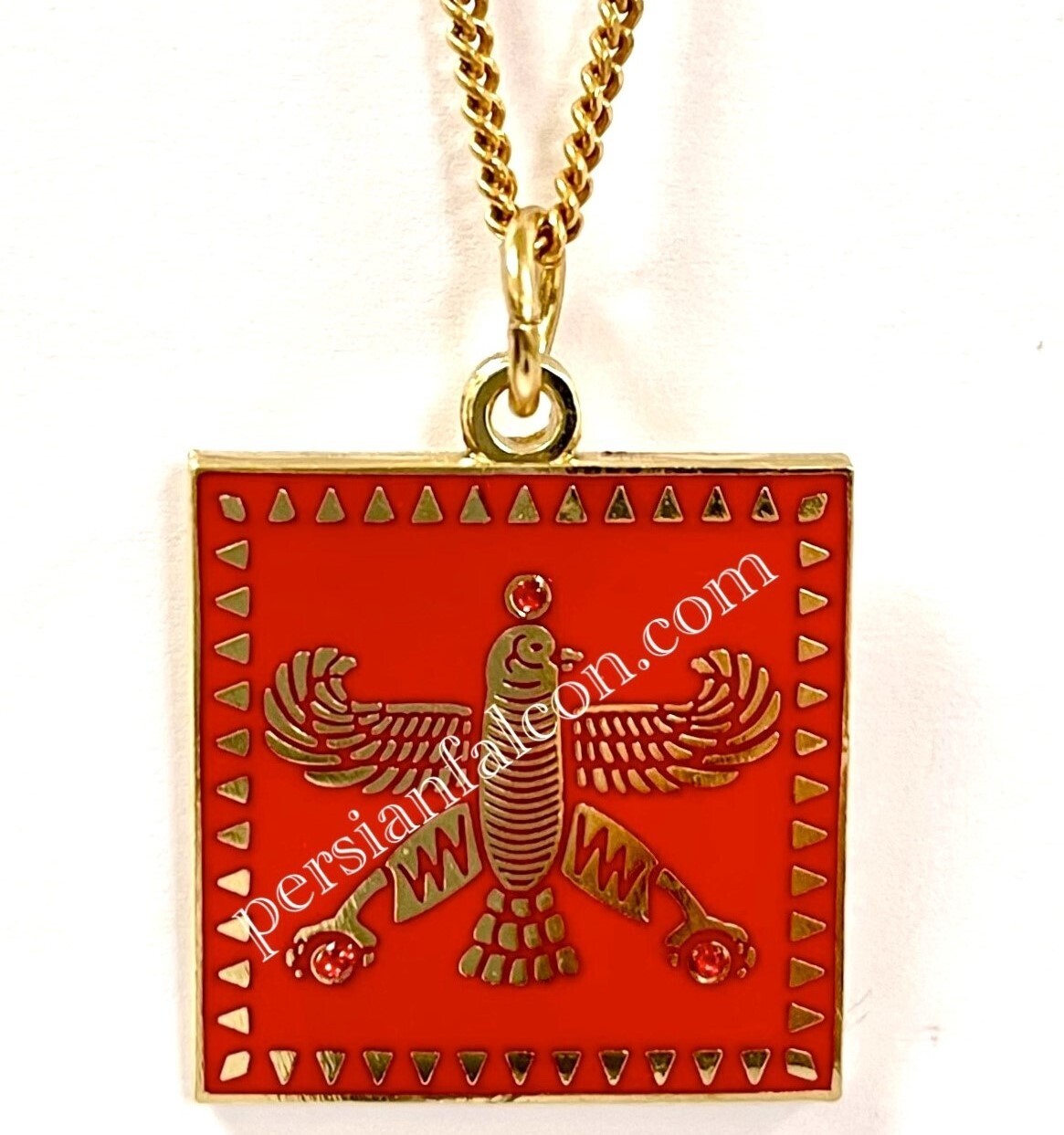 The Persian Falcon. Deep Red with 3 Red Stones. Original Pattern. Pendant.