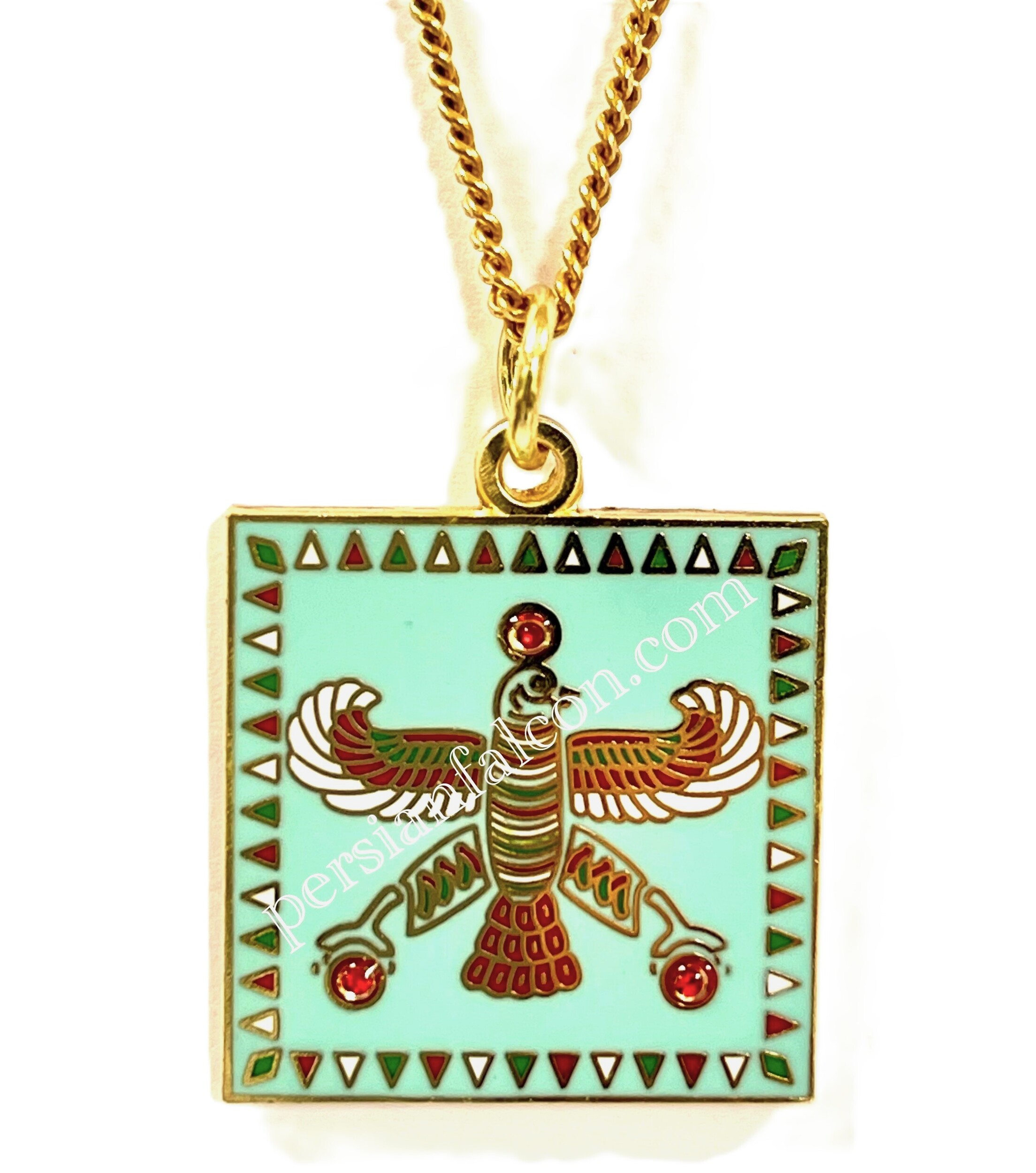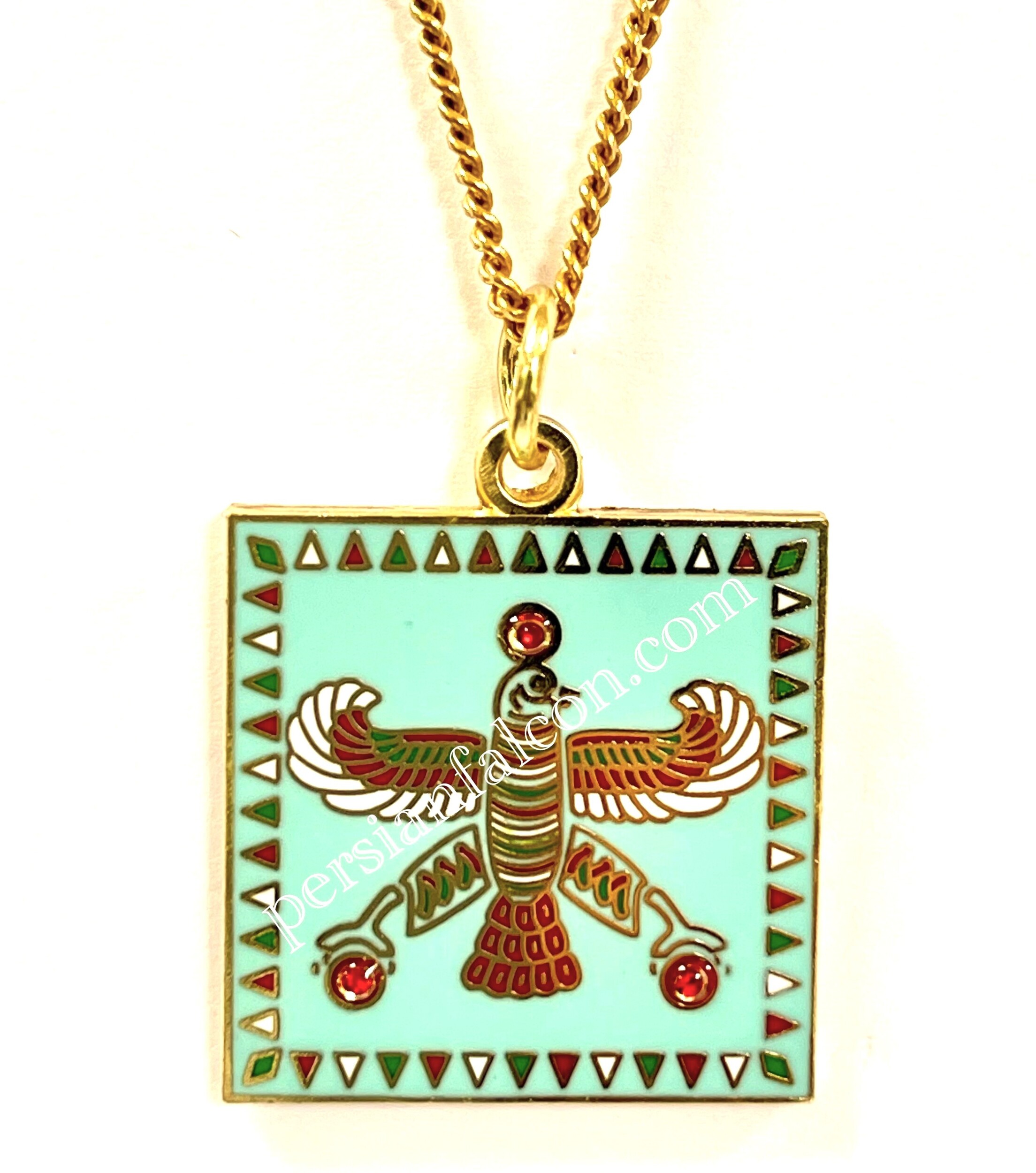 The Persian Falcon. Blue Turquoise with 3 Red Stones. Pendant.